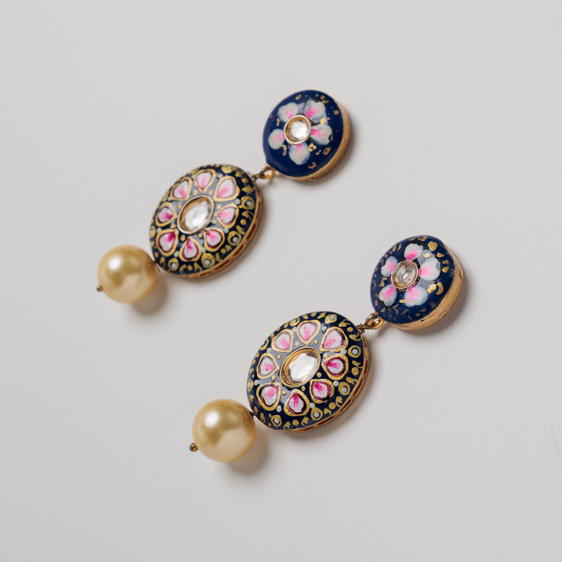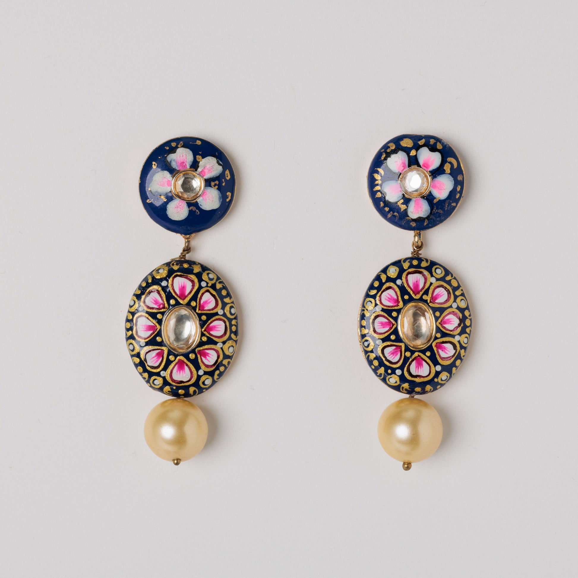 Cercei Pictati cu Email, Perle și Zirconii – Rafinati si Originali