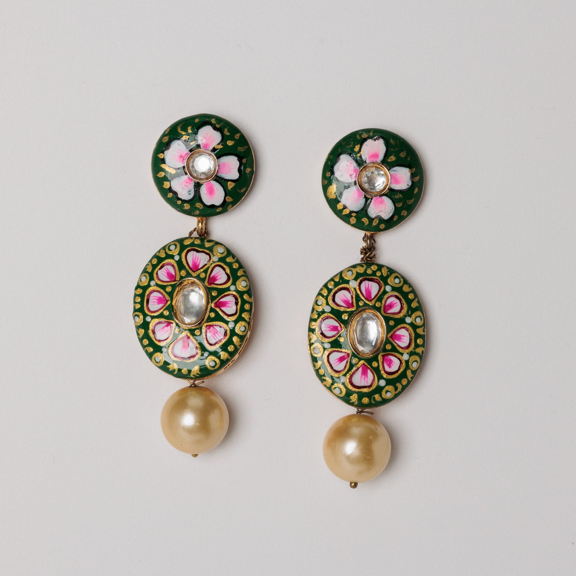 Cercei Pictati cu Email, Perle și Zirconii – Delicati și Originali