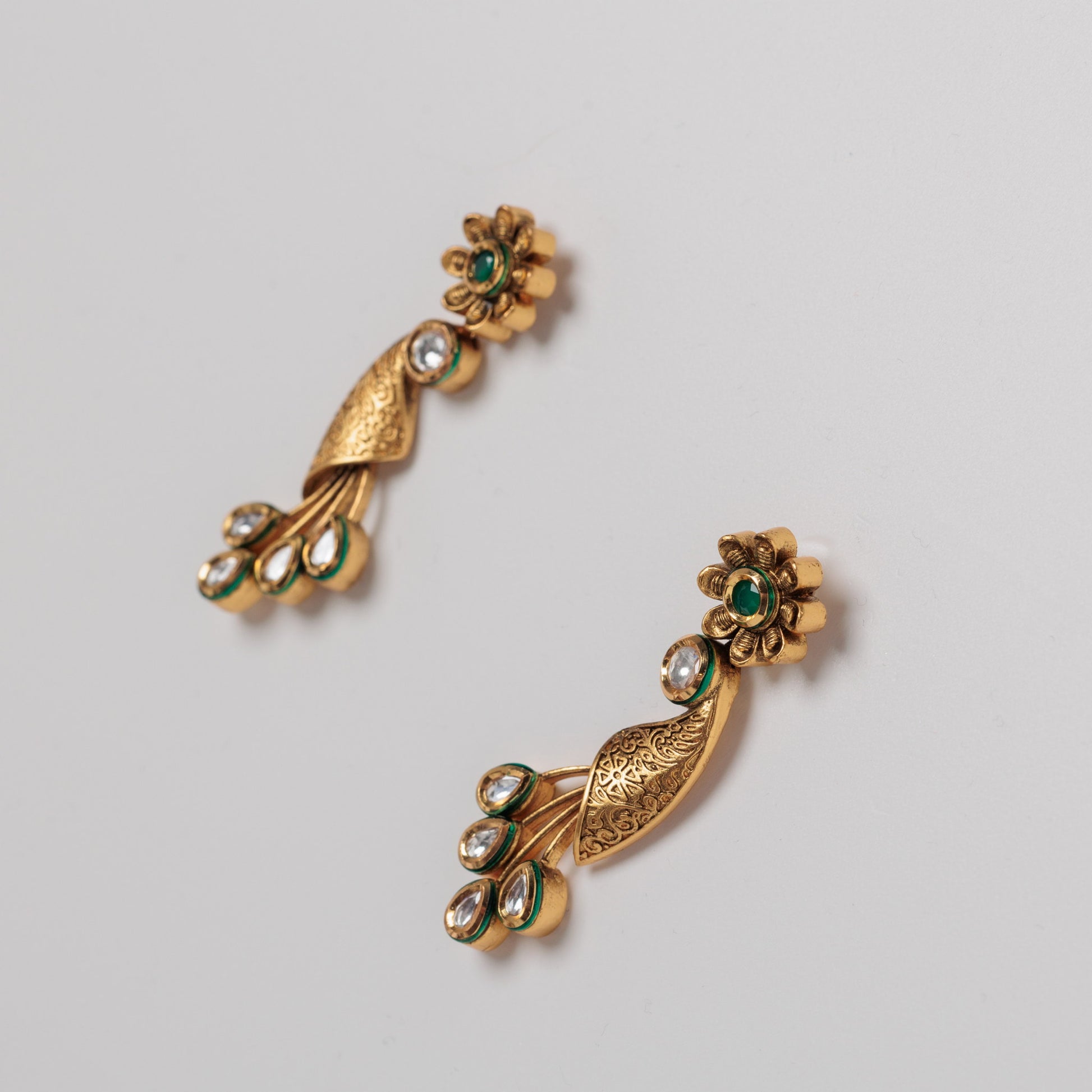 Adaugă un strop de culoare și energie ținutelor tale cu acești cercei cu motiv floral, combinație de aventurin sintetic verde și zirconii strălucitoare. Designul lor ingenios, cu o parte fixă și o parte mobilă, îi face dinamici și jucăuși, perfecți pentru a completa orice ținută.