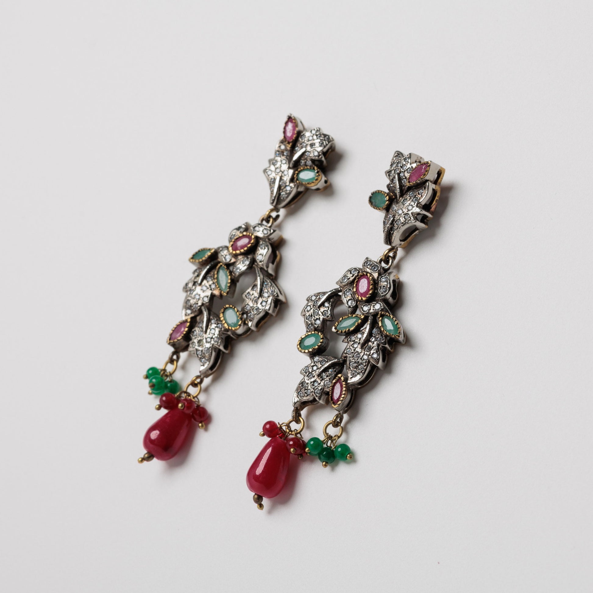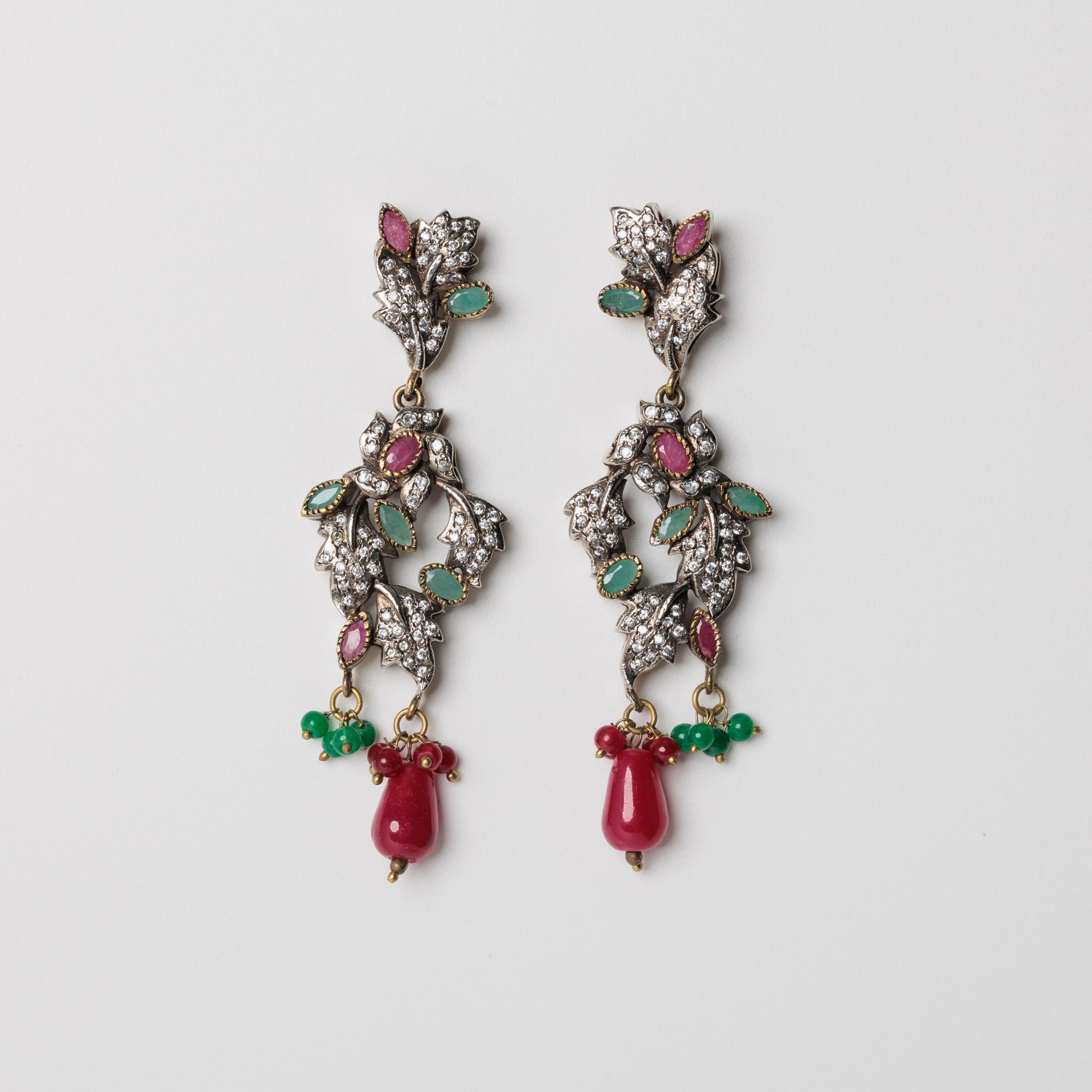 Un accesoriu deosebit, realizat cu granat sintetic și smarald sintetic, îmbogățit cu detalii fine de zirconiu, ce îmbină armonios intensitatea culorilor cu rafinamentul designului. Hipoalergenic și fără nichel, oferă confort și siguranță, fiind alegerea ideală pentru a completa cu stil și eleganță ținutele de ocazie sau pe cele de zi cu zi.
