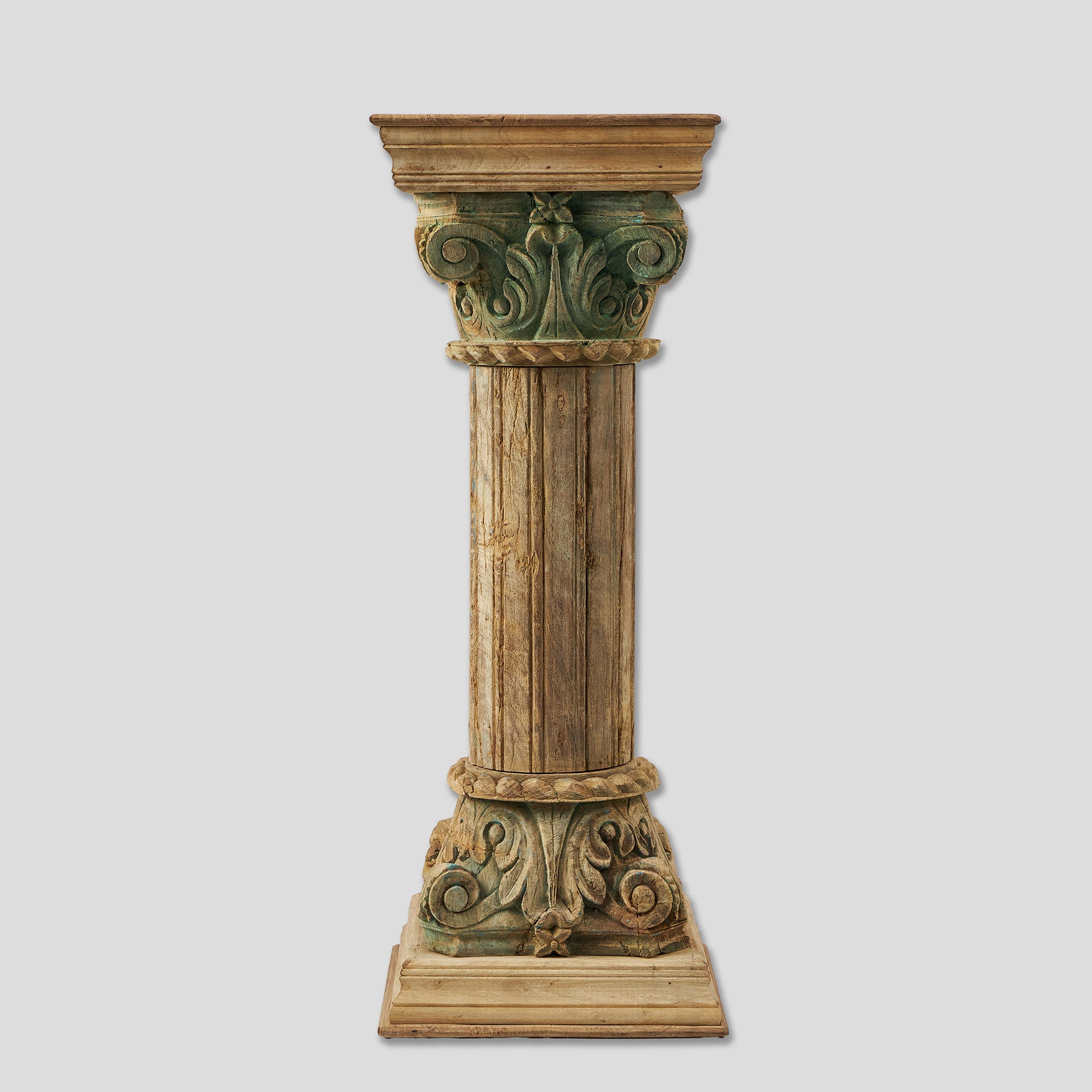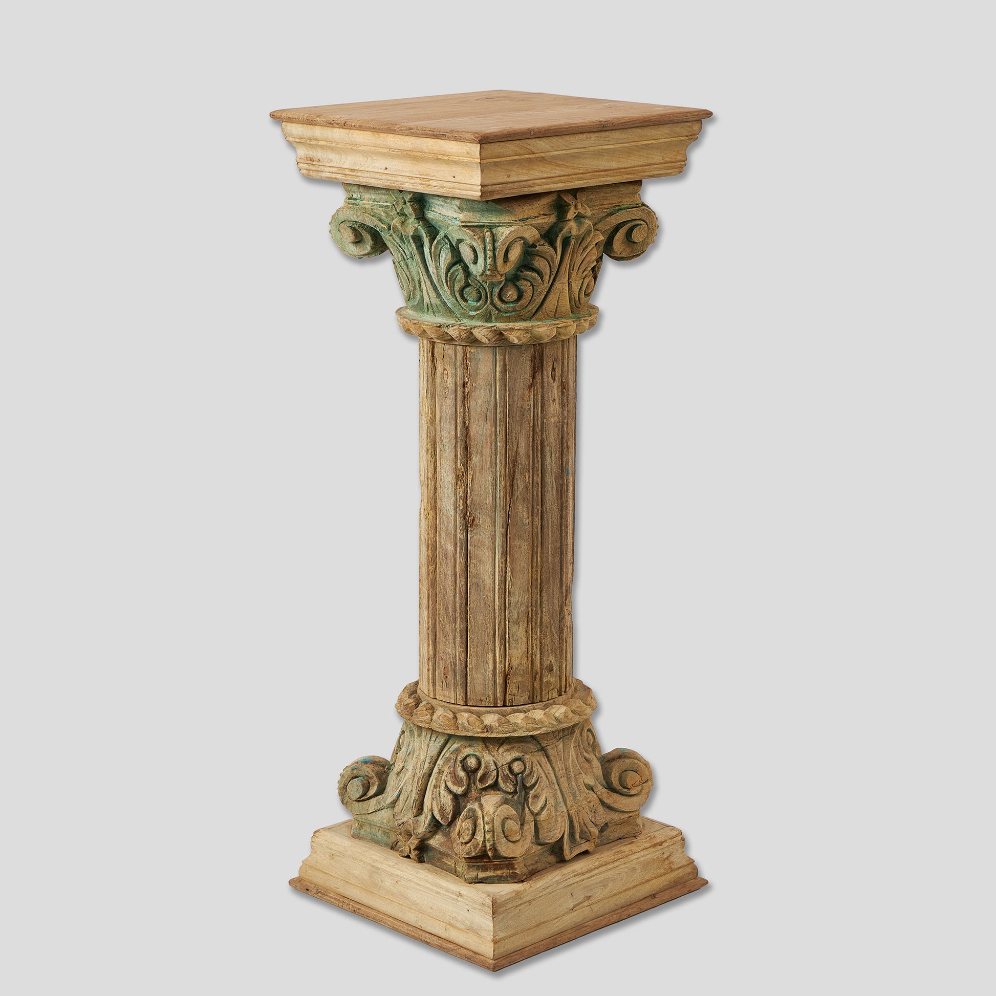 Suport realizat din lemn, inspirat din arhitectura clasică. Are detalii sculptate și o bază solidă, fiind ideal pentru expunerea plantelor sau a obiectelor decorative. Se potrivește în living, la intrare, pe o terasă acoperită sau într-un spațiu comercial, unde poate fi folosit ca piesă de accent