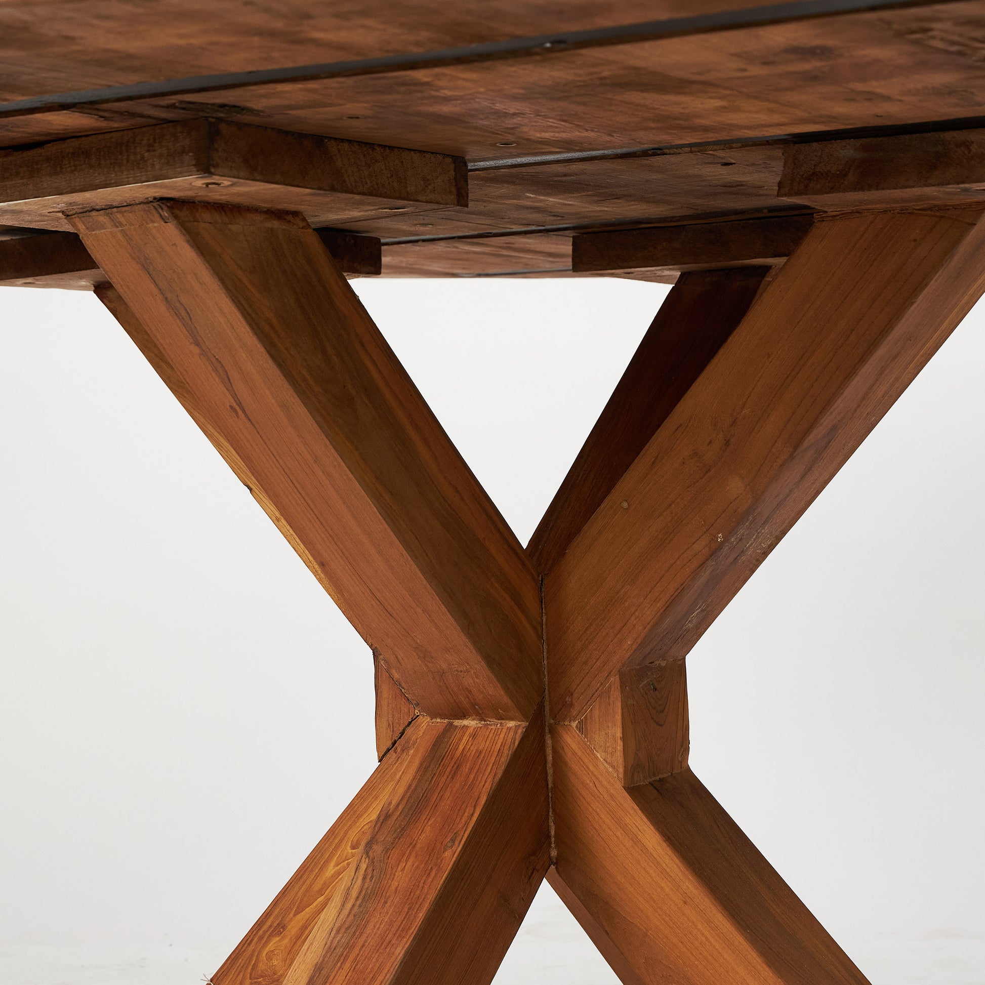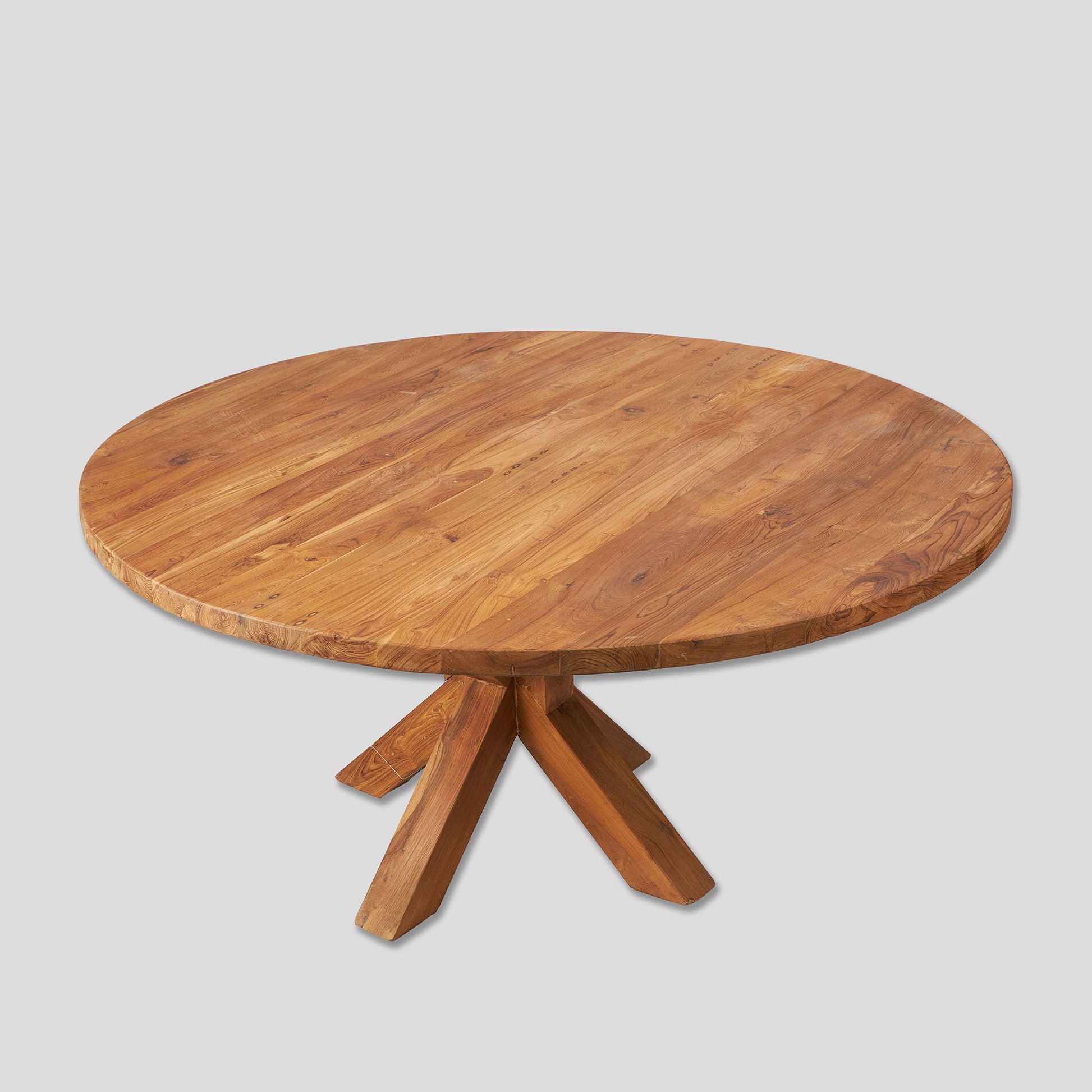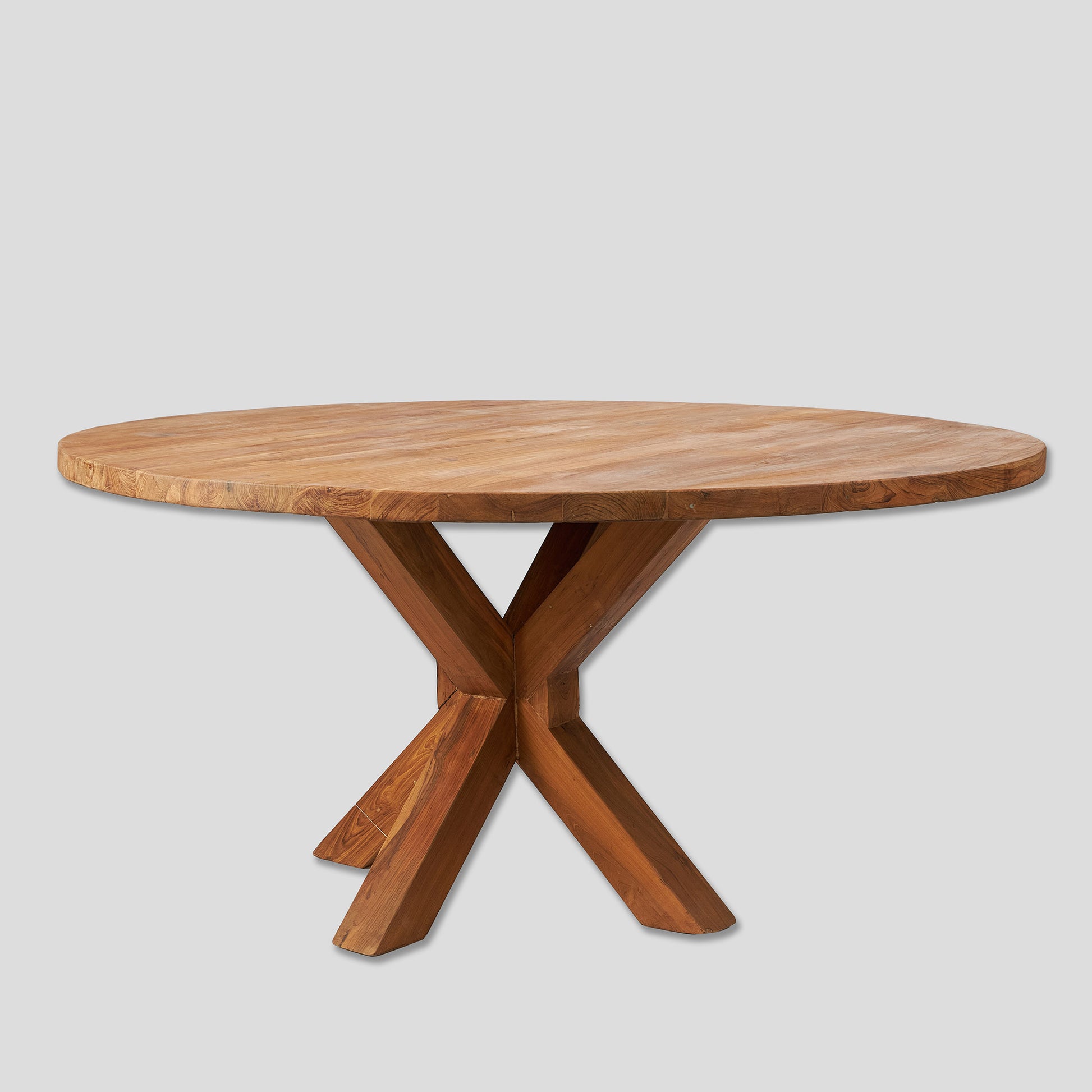 Masă rotundă de dining, realizată integral din lemn masiv, cu un design robust și bază în formă de cruce pentru stabilitate. Forma rotundă favorizează interacțiunea, transformând mesele în momente plăcute petrecute alături de familie și prieteni. Se integrează ușor atât în interioare moderne, cât și în spații cu decor clasic sau rustic.