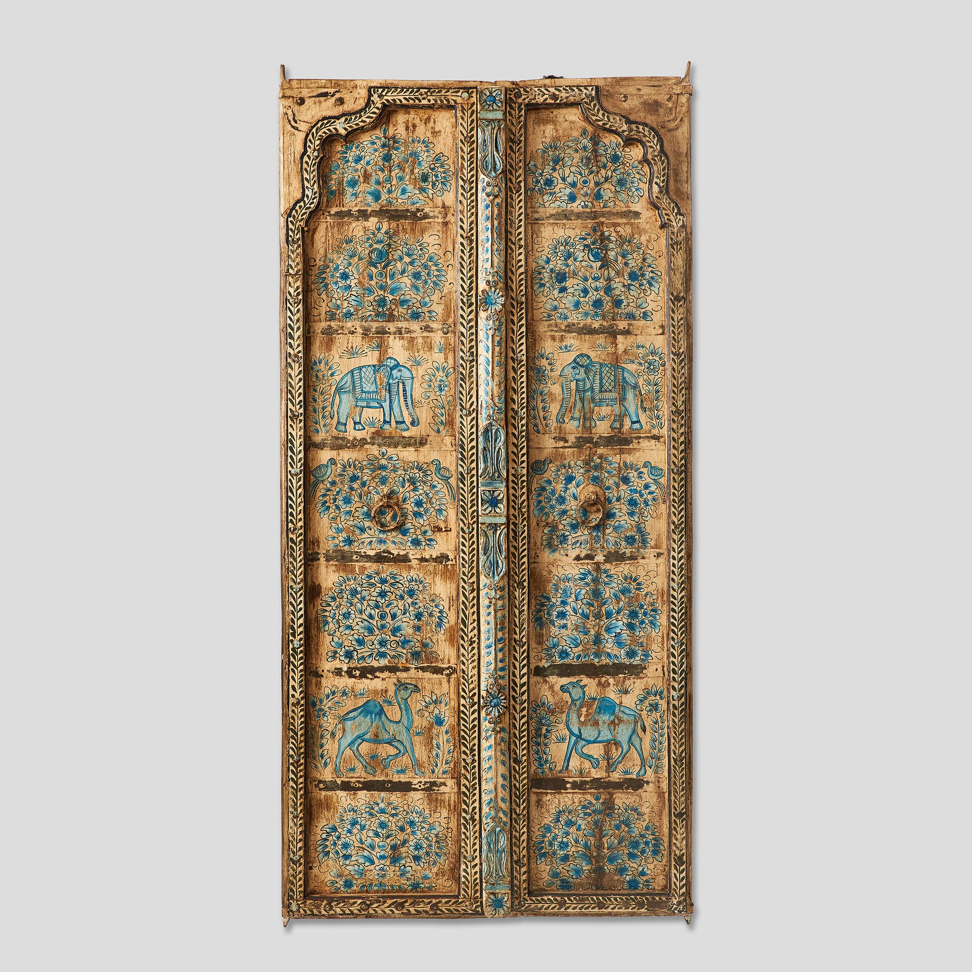 Panou decorativ din lemn, pictat manual, cu motive tradiționale indiene ce ilustrează elefanți, cămile și scene vegetale stilizate. Culorile vii și detaliile fine îi dau un aer autentic și artistic, transformându-l într-o veritabilă operă de artă. Poate fi folosit ca element de accent pe un perete, ușă decorativă sau separator de spațiu, aducând o notă exotică și unică oricărui interior.