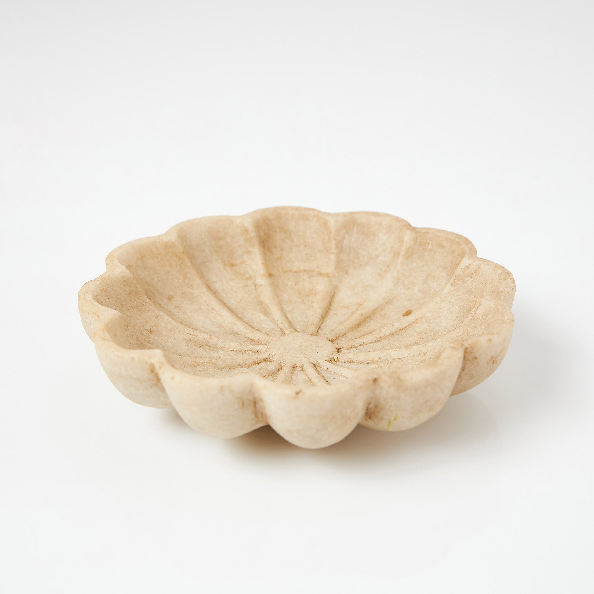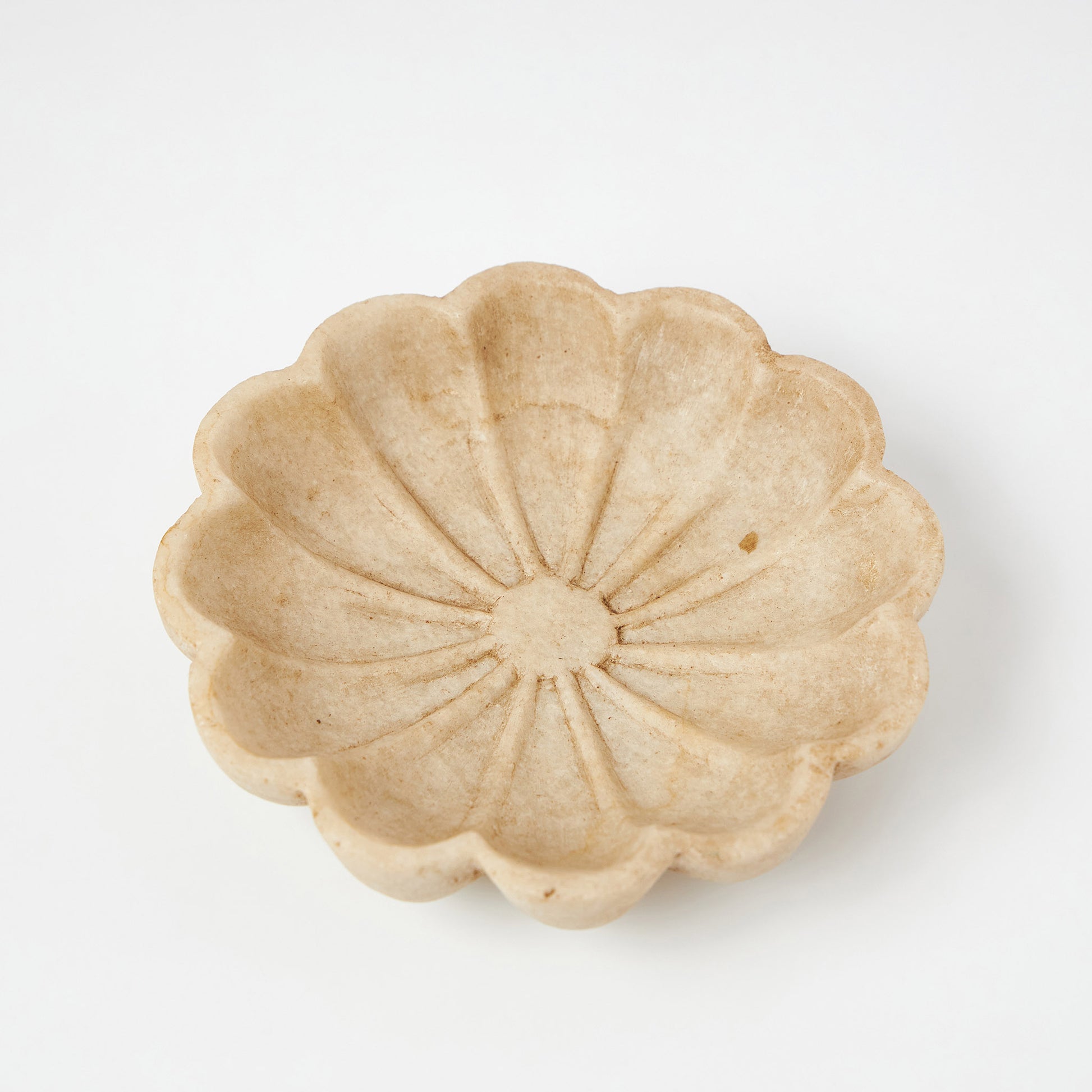 Bol din marmură, sculptat manual în formă de floare cu petale rotunjite. Poate fi folosit pentru a așeza fructe, nuci sau obiecte mici, dar și ca decorațiune de sine stătătoare pe masă, etajeră sau în vitrină.