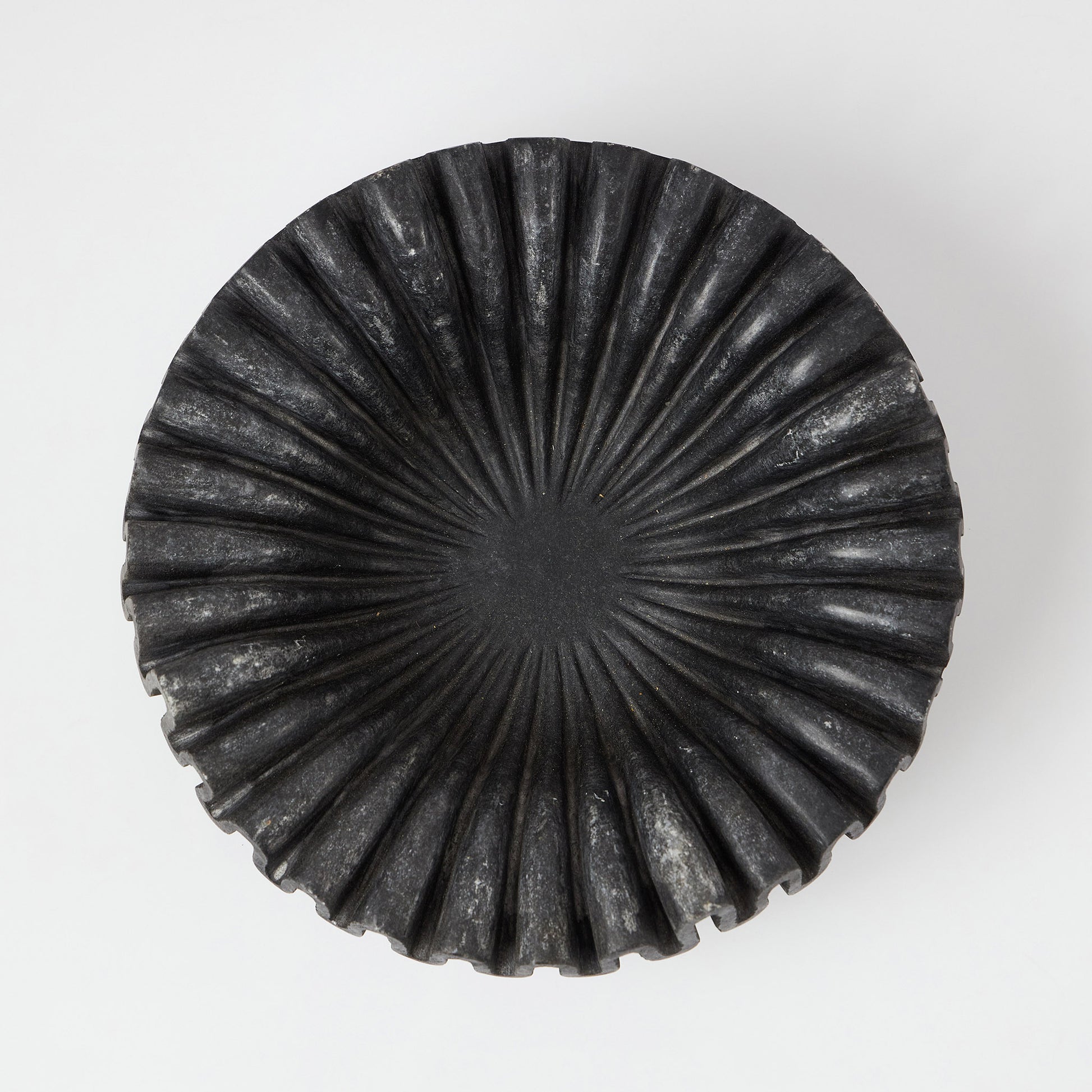 Bol decorativ din marmură neagră, sculptat manual cu margini ondulate. Poate fi folosit pentru fructe, lumânări sau obiecte mici, dar și ca element de decor de sine stătător, adăugând un accent aparte pe masă sau într-un colț de living.