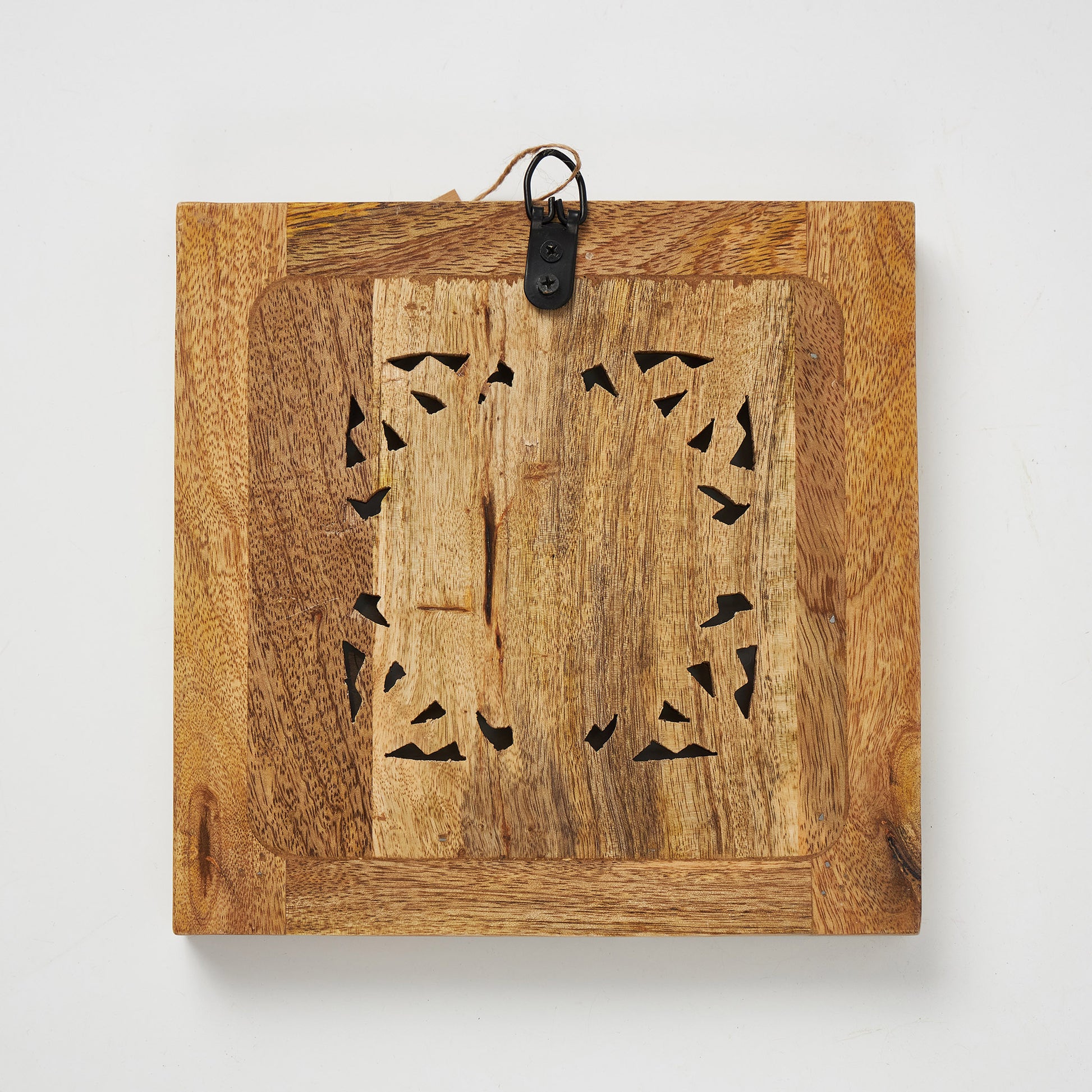 Panou decorativ pătrat, realizat din lemn masiv și sculptat manual cu motiv floral central. Are o ramă simplă care pune în valoare detaliile ornamentale, fiind ideal pentru a fi expus pe perete în living, hol sau birou. O piesă autentică, ce îmbină frumusețea naturală a lemnului cu măiestria lucrului manual.