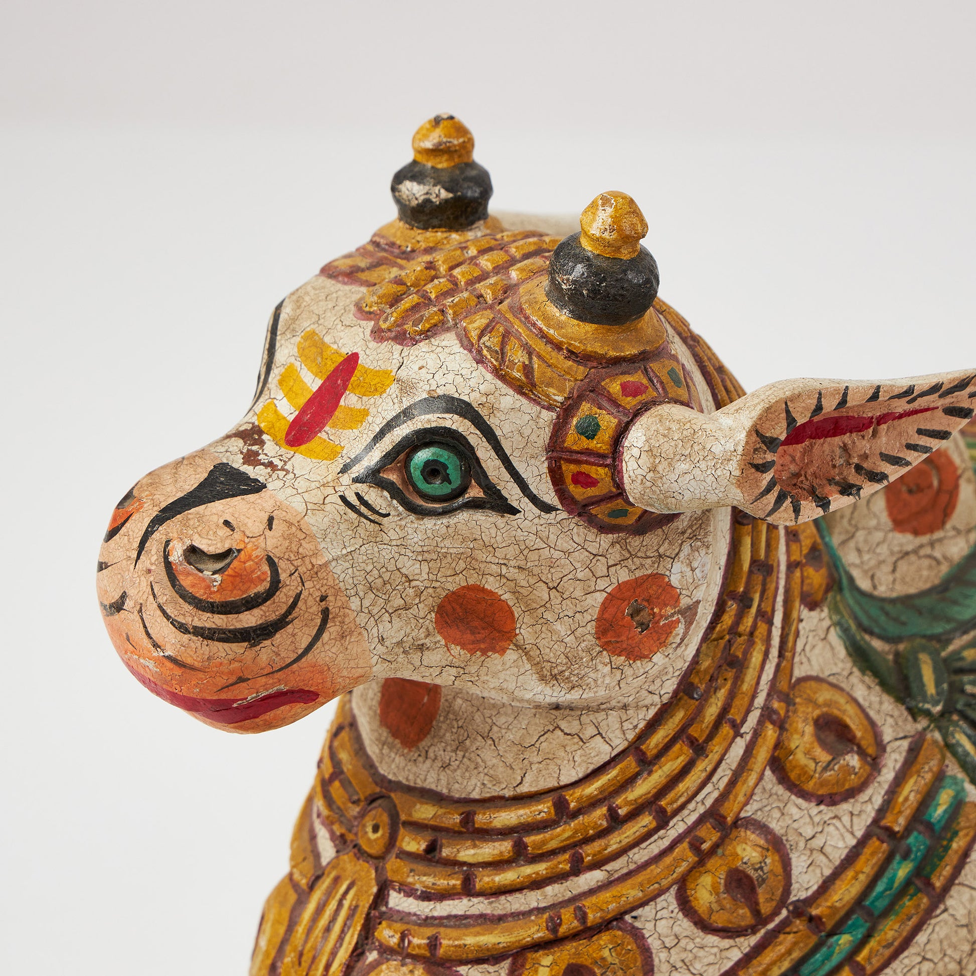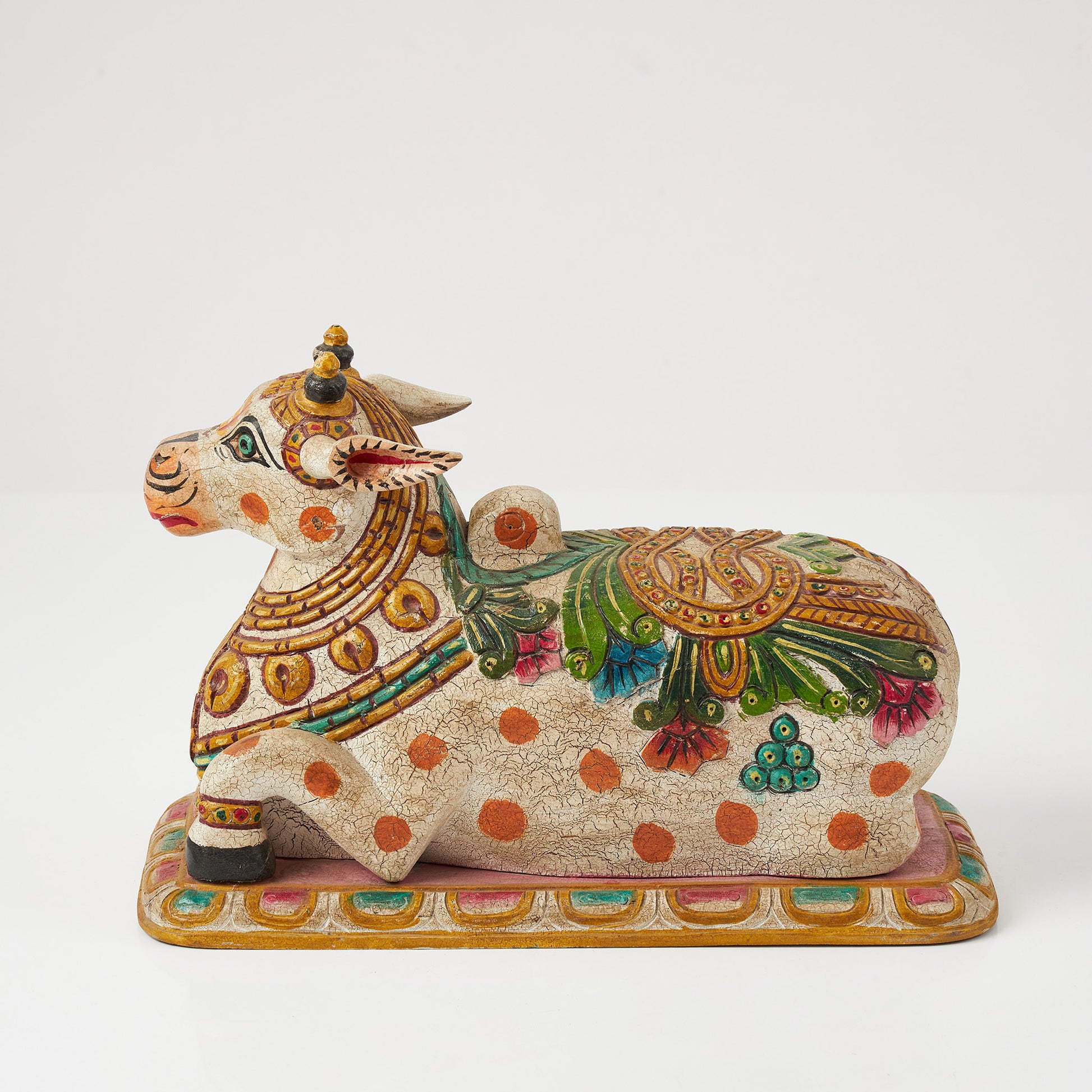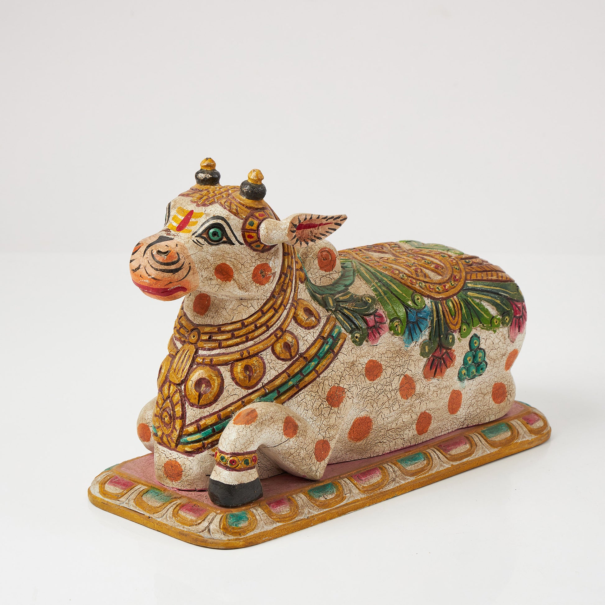 Vacă decorativă din lemn de mango, pictată manual în culori vii. În cultura indiană, vaca este considerată sacră și simbolizează prosperitatea, abundența și protecția. Această piesă aduce autenticitate și un accent exotic în living, birou sau colecții de artă orientală.