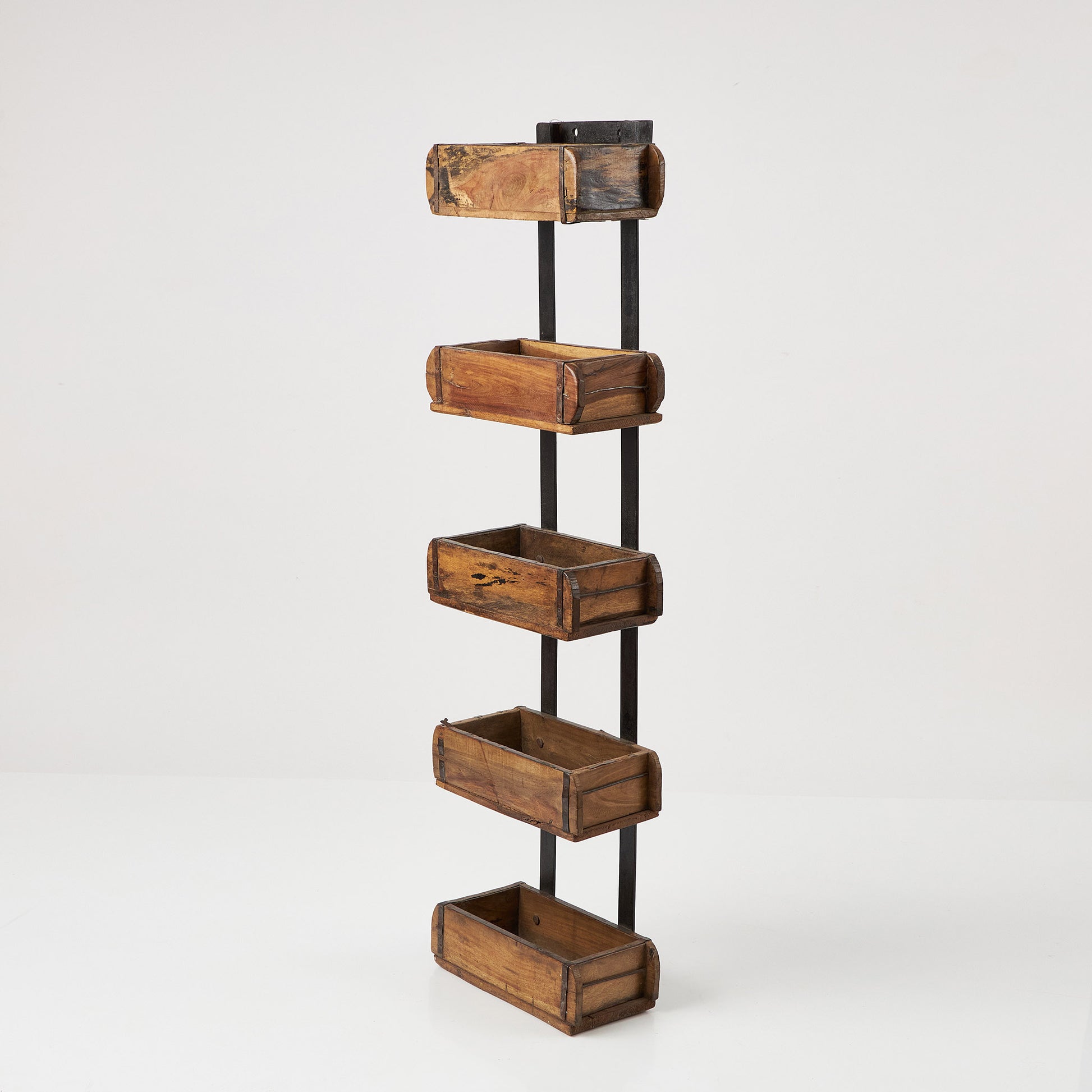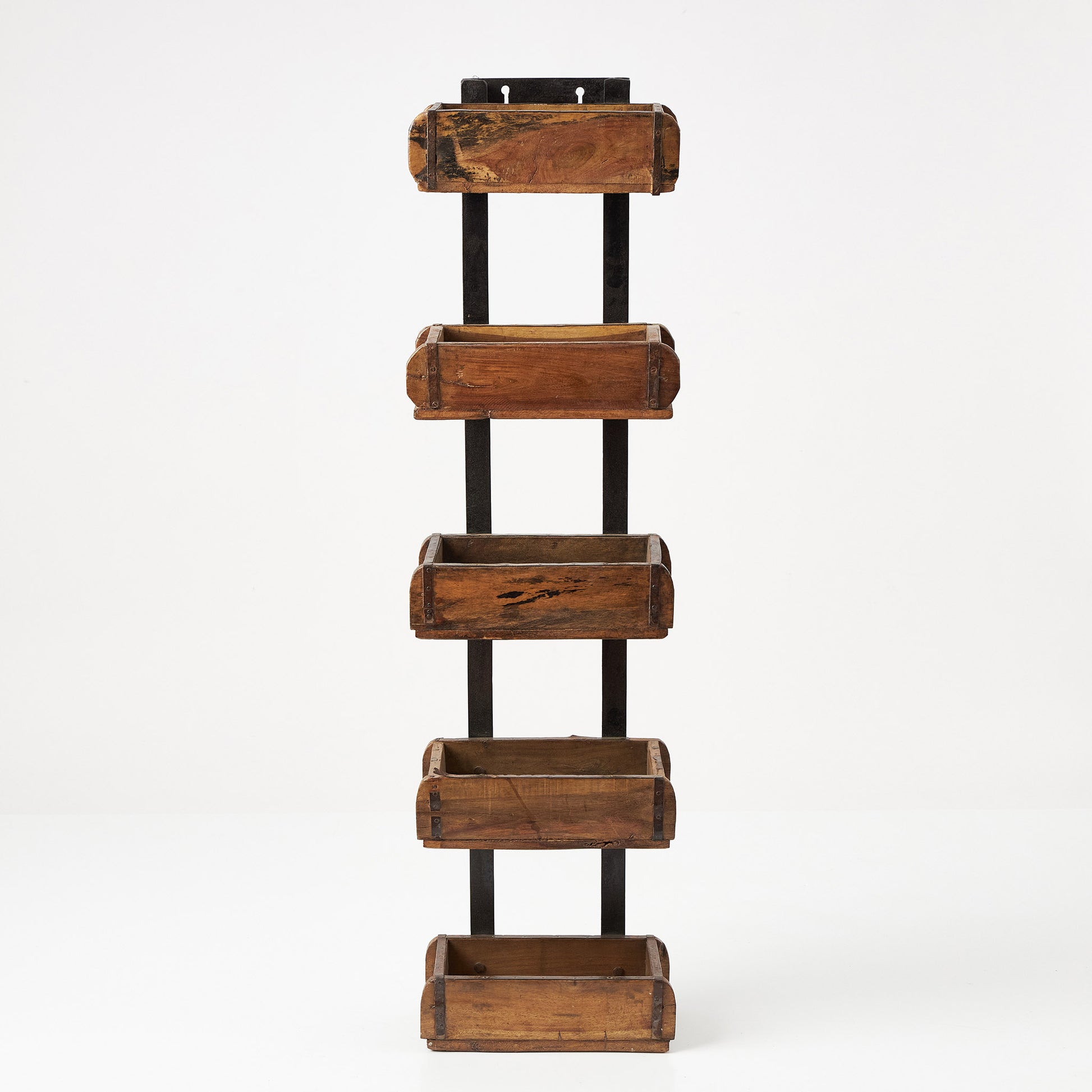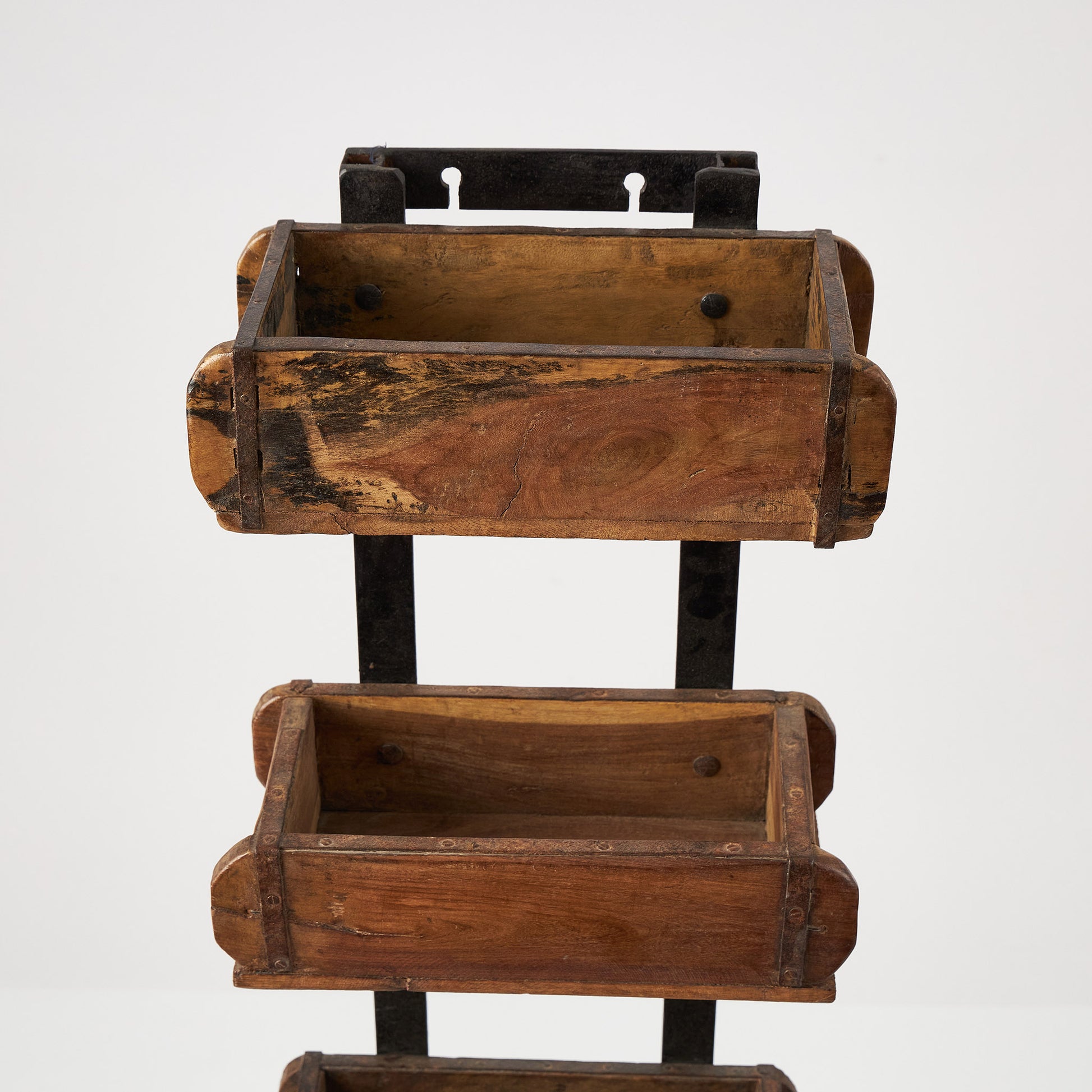 Suport de plante etajat, realizat din lemn și metal, cu un design practic și decorativ. Ideal pentru a expune plante, ierburi aromatice sau obiecte decorative, se integrează ușor atât în interior, cât și pe terasă sau balcon.