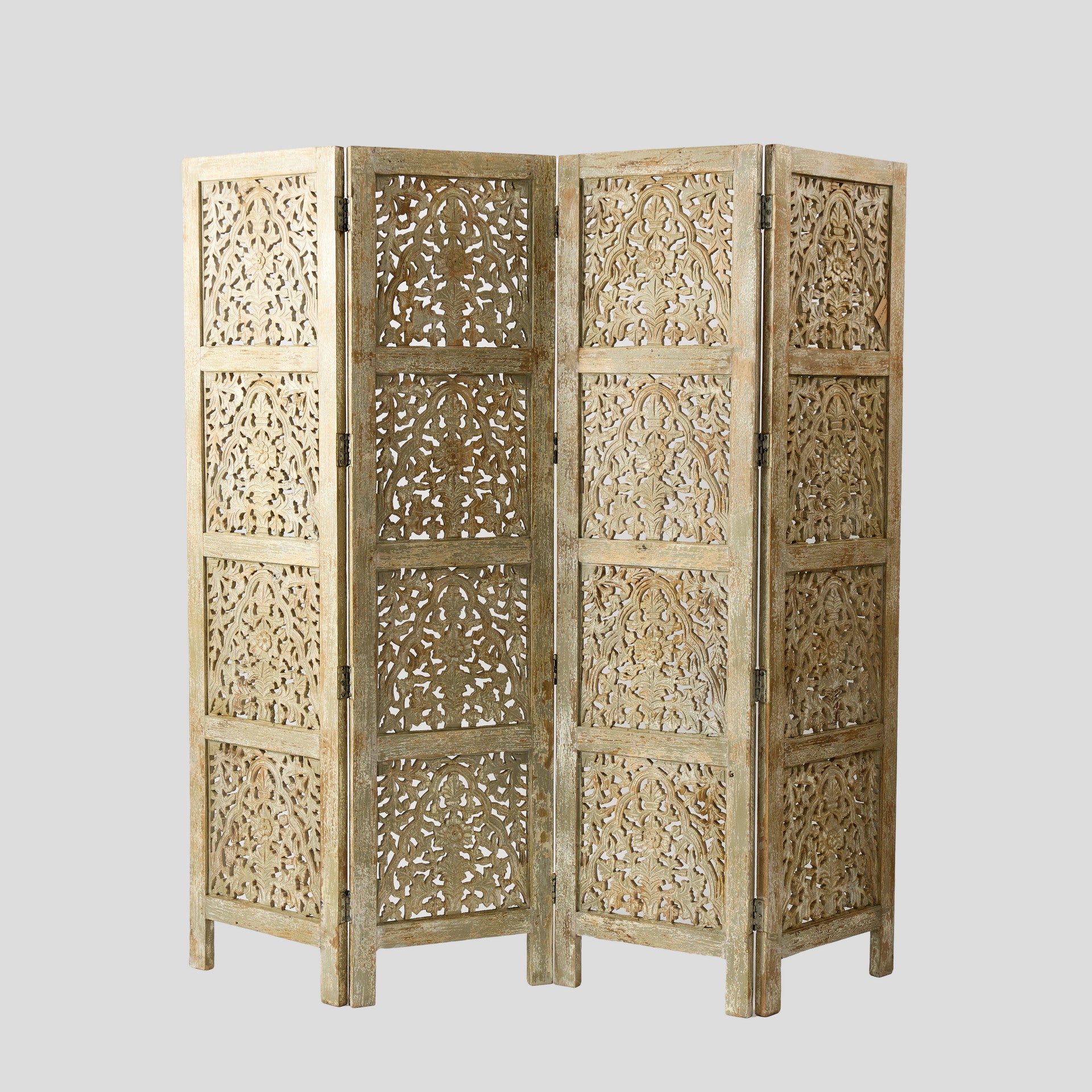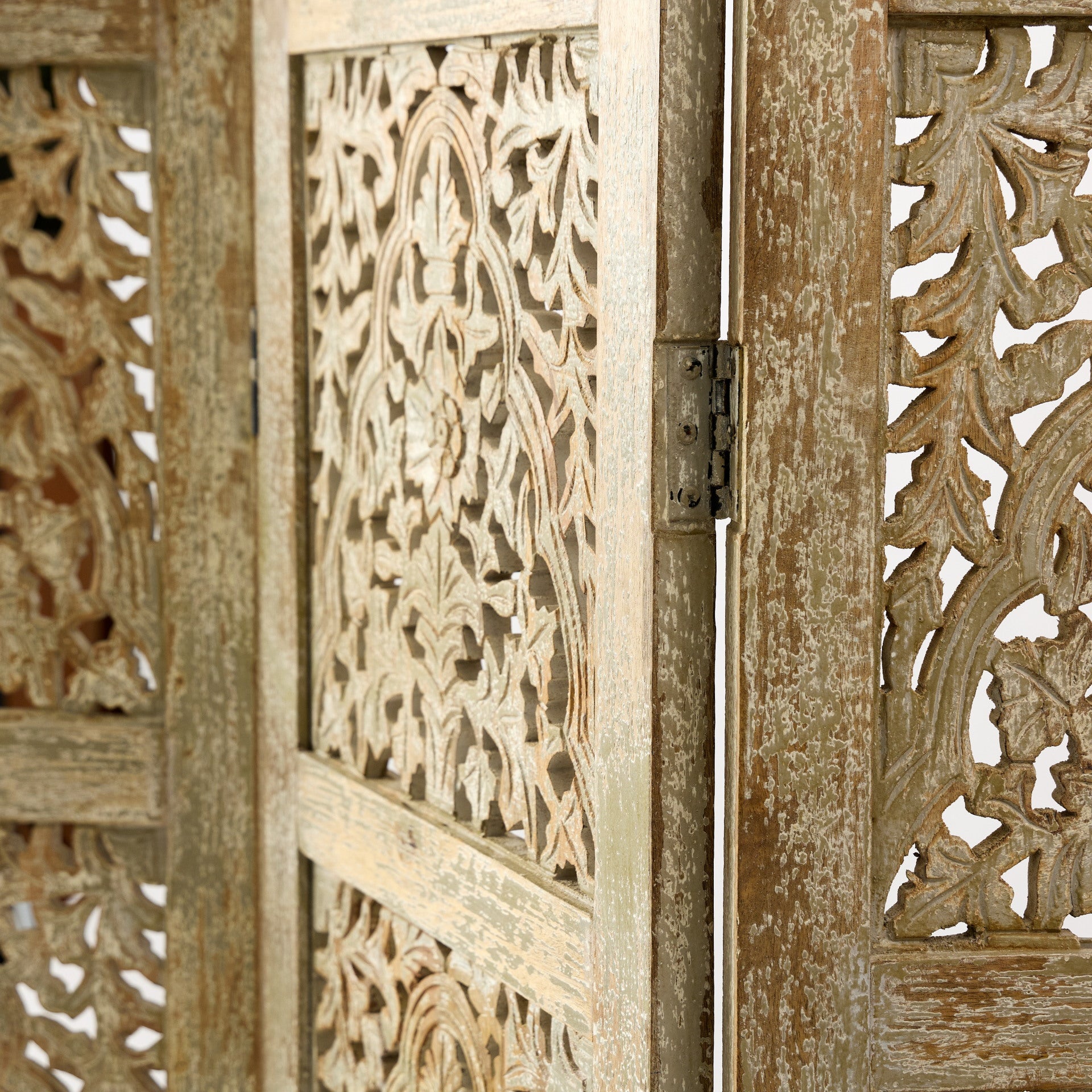 Paravan realizat din lemn de mango, format din mai multe panouri pliabile, decorate cu sculpturi realizate manual. Modelul decupat lasă lumina să treacă și creează un efect decorativ plăcut în încăpere. Acest paravan din lemn poate fi folosit pentru a separa diferite zone dintr-o cameră sau pentru a crea mai multă intimitate. Se poate amplasa în living, dormitor, dressing sau într-un spațiu de intrare. Paravanul din lemn de mango este potrivit pentru locuințe, pensiuni, restaurante sau alte spații amenajate cu mobilier din lemn și elemente decorative.