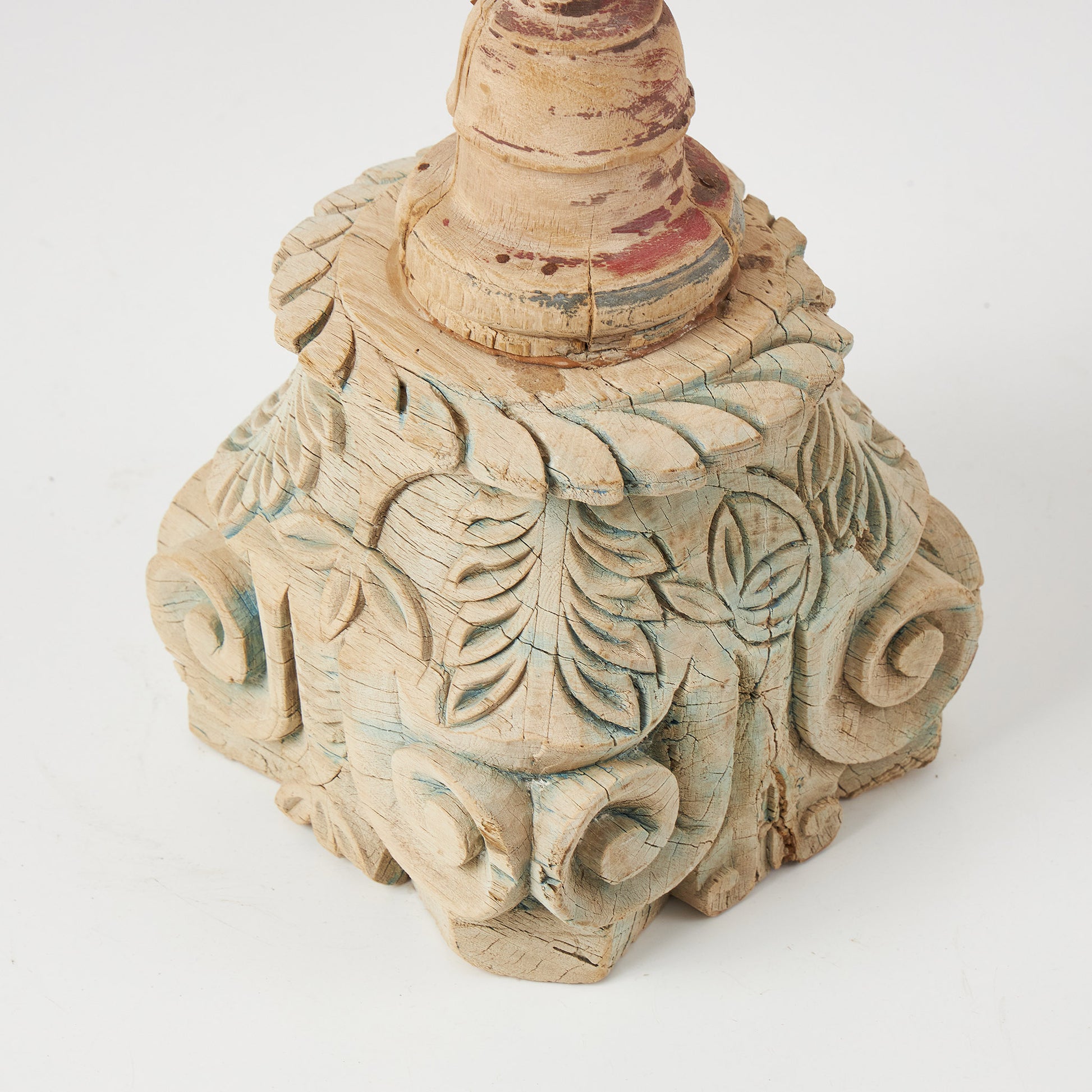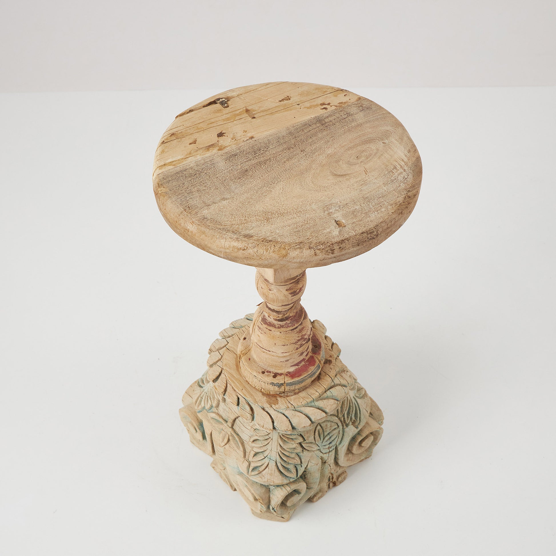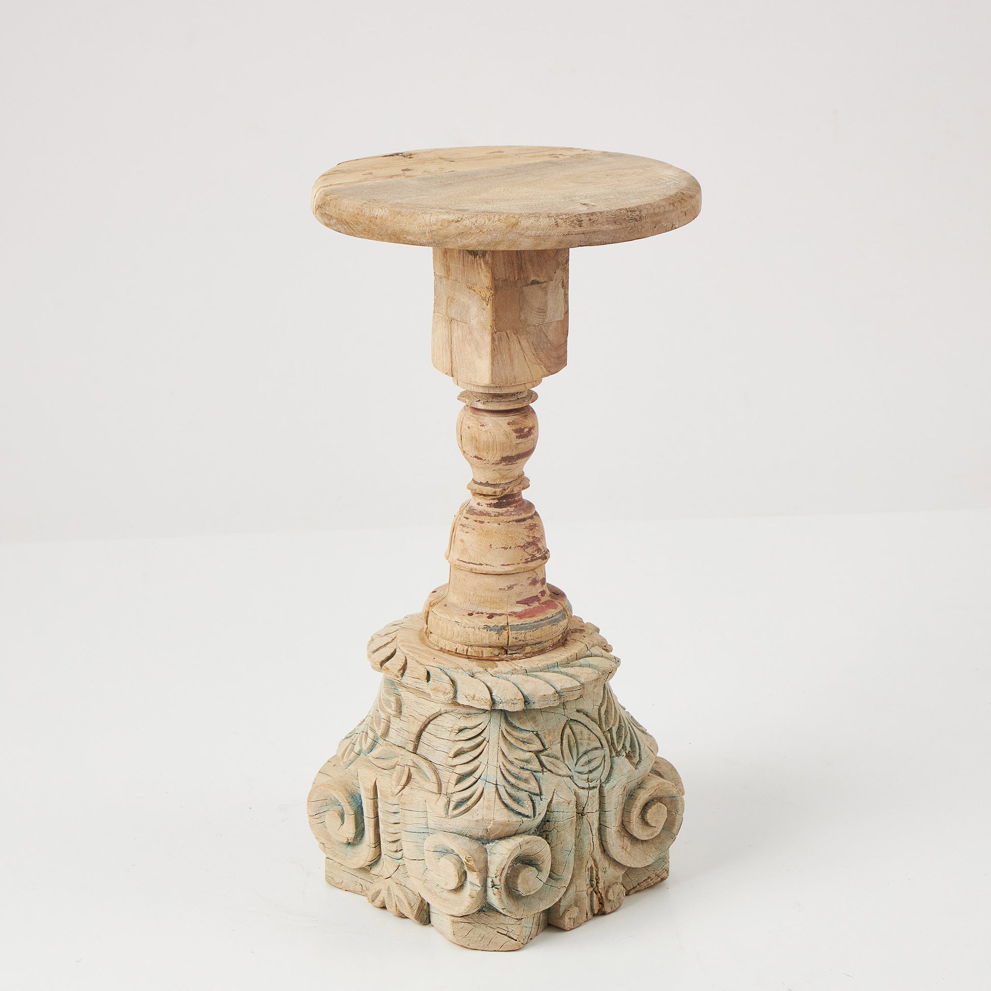 Suport din lemn sculptat manual, cu detalii inspirate din motive tradiționale. O piesă versatilă, care poate fi folosită ca masă laterală, suport pentru plante sau obiecte decorative, adăugând un accent autentic în orice interior.