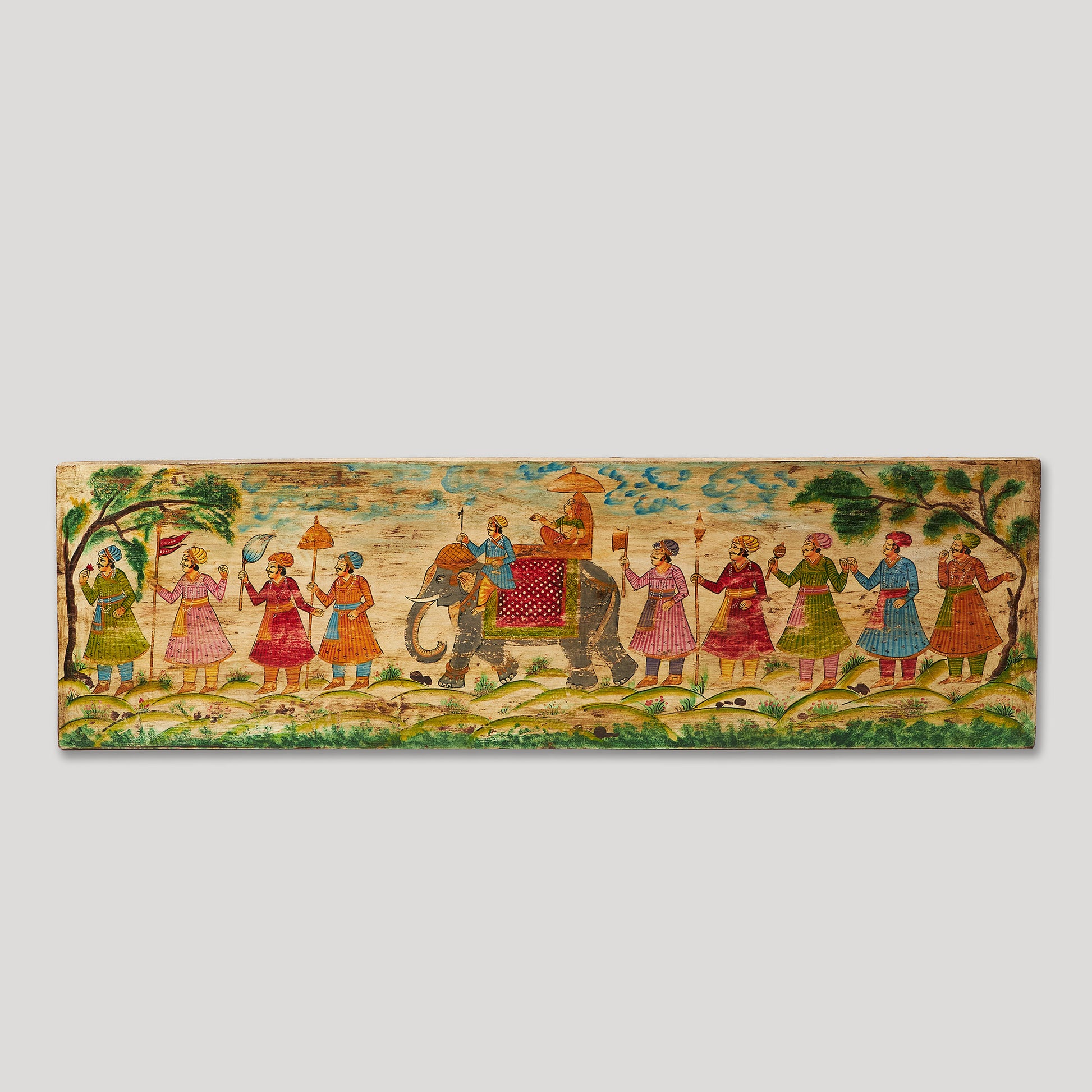 Panou decorativ pictat manual, ce ilustrează scene tradiționale indiene pline de culoare și detalii. O piesă artistică de inspirație orientală, perfectă pentru a înfrumuseța un living, un hol sau un spațiu de lucru, aducând un aer exotic și rafinat. Ideal și pentru restaurante sau spații tematice, unde completează decorul cu autenticitate și energie vibrantă.