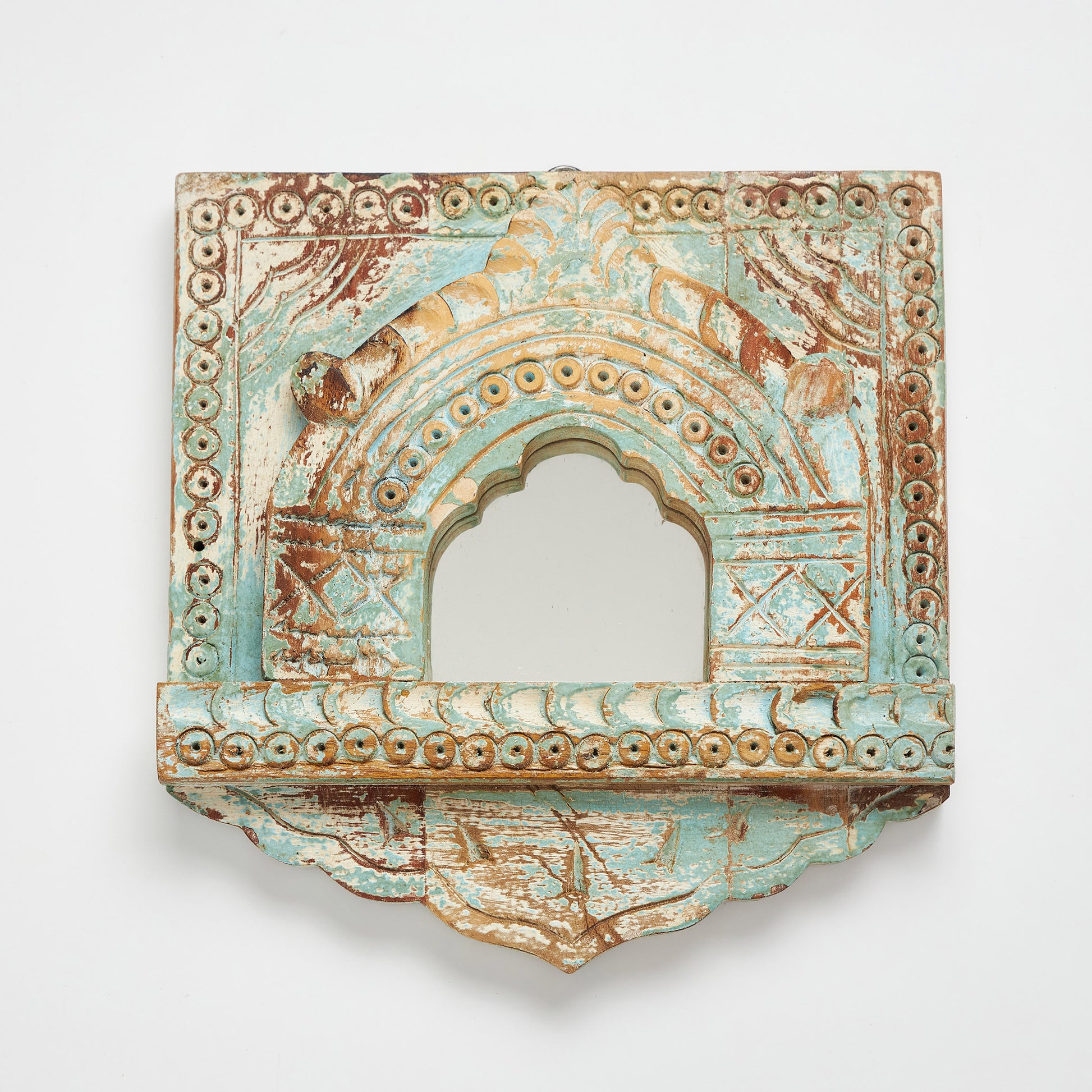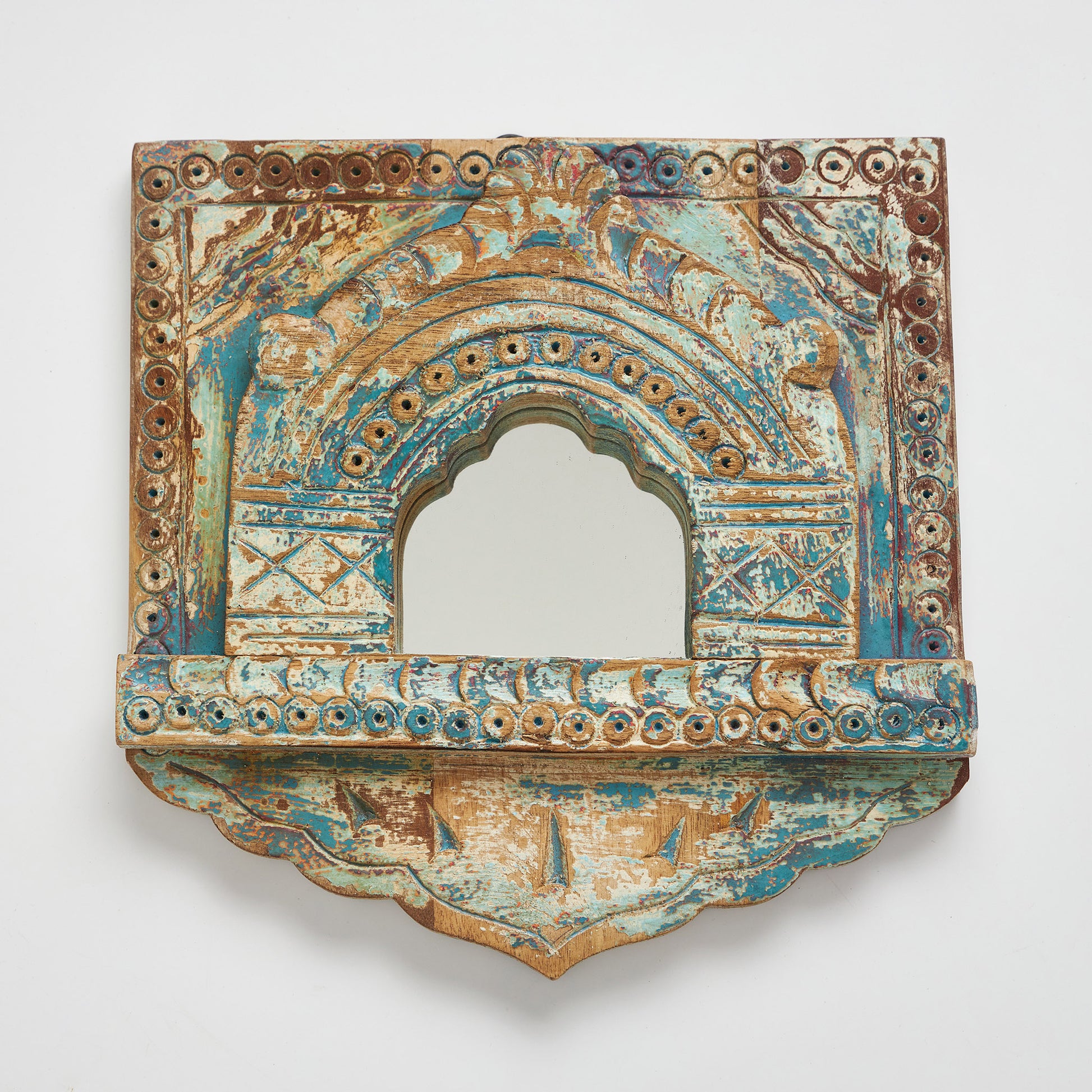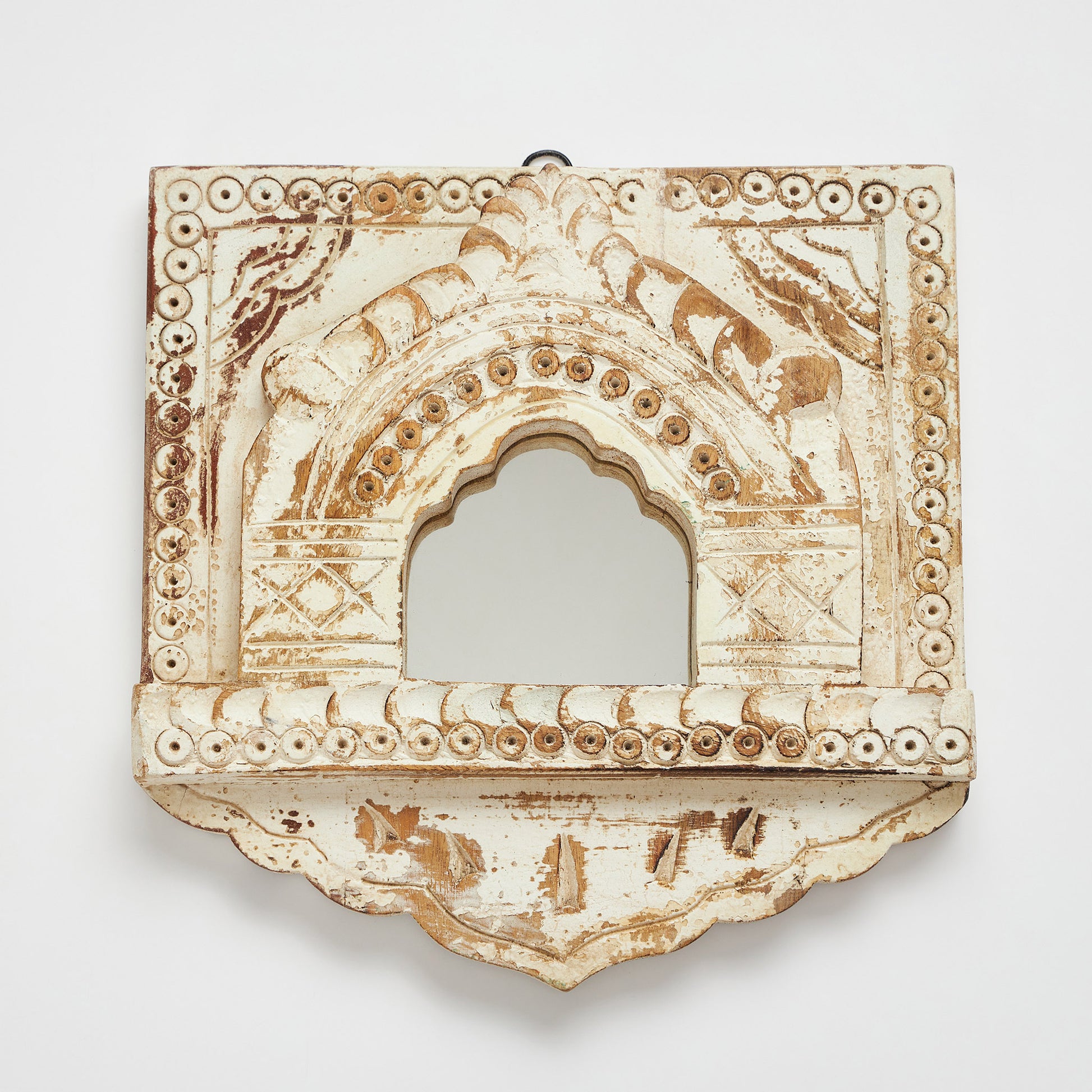 Oglindă cu ramă sculptată manual din lemn. Este de dimensiuni mici, ușor de integrat pe un perete, pe un hol sau deasupra unei console. Potrivită ca detaliu decorativ care adaugă un plus de autenticitate oricărui spațiu.