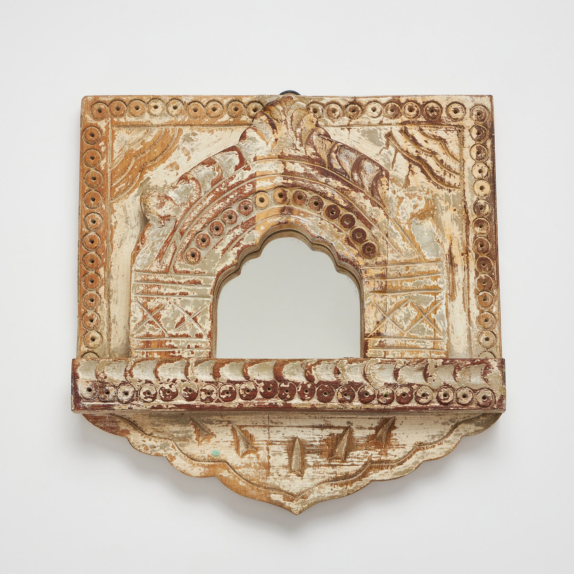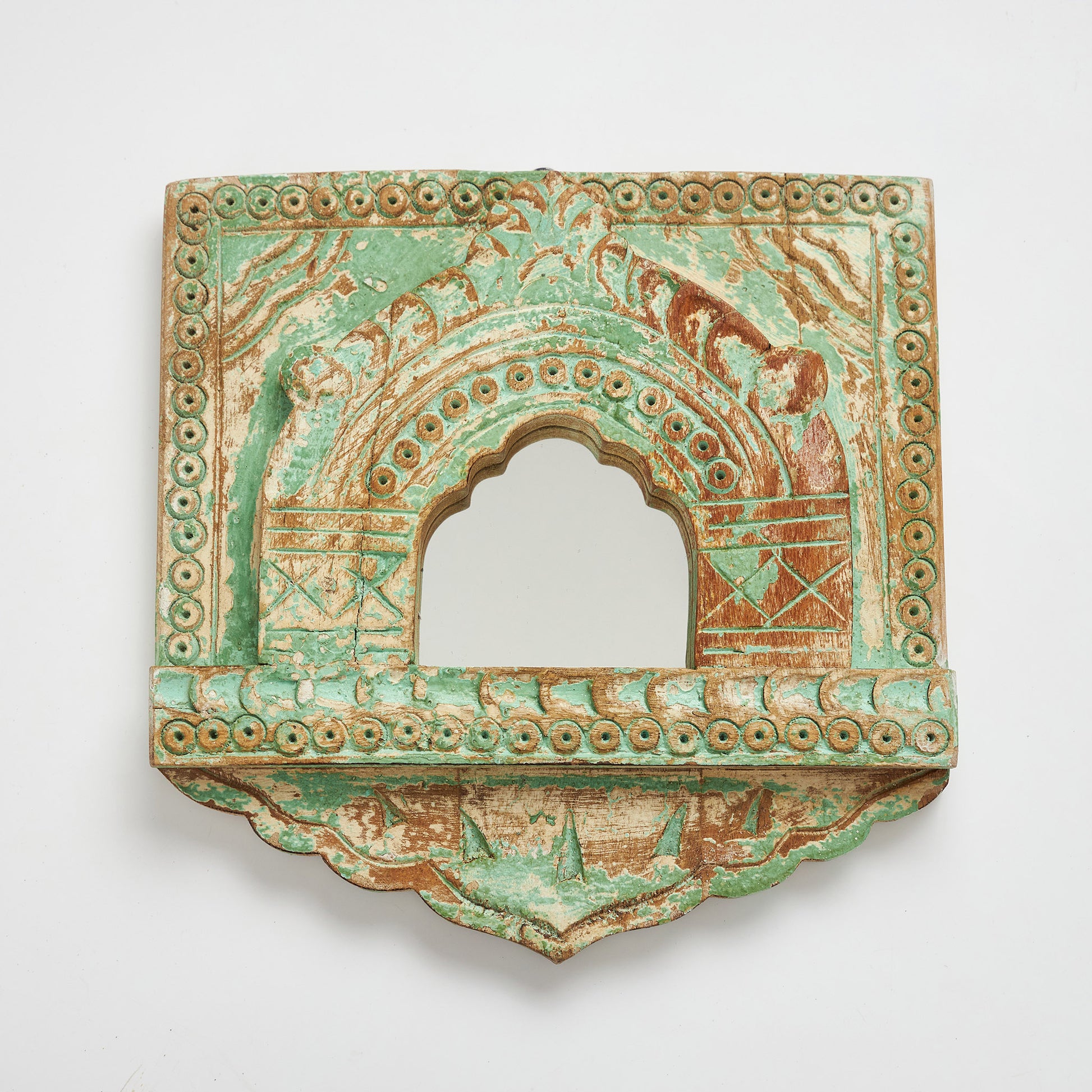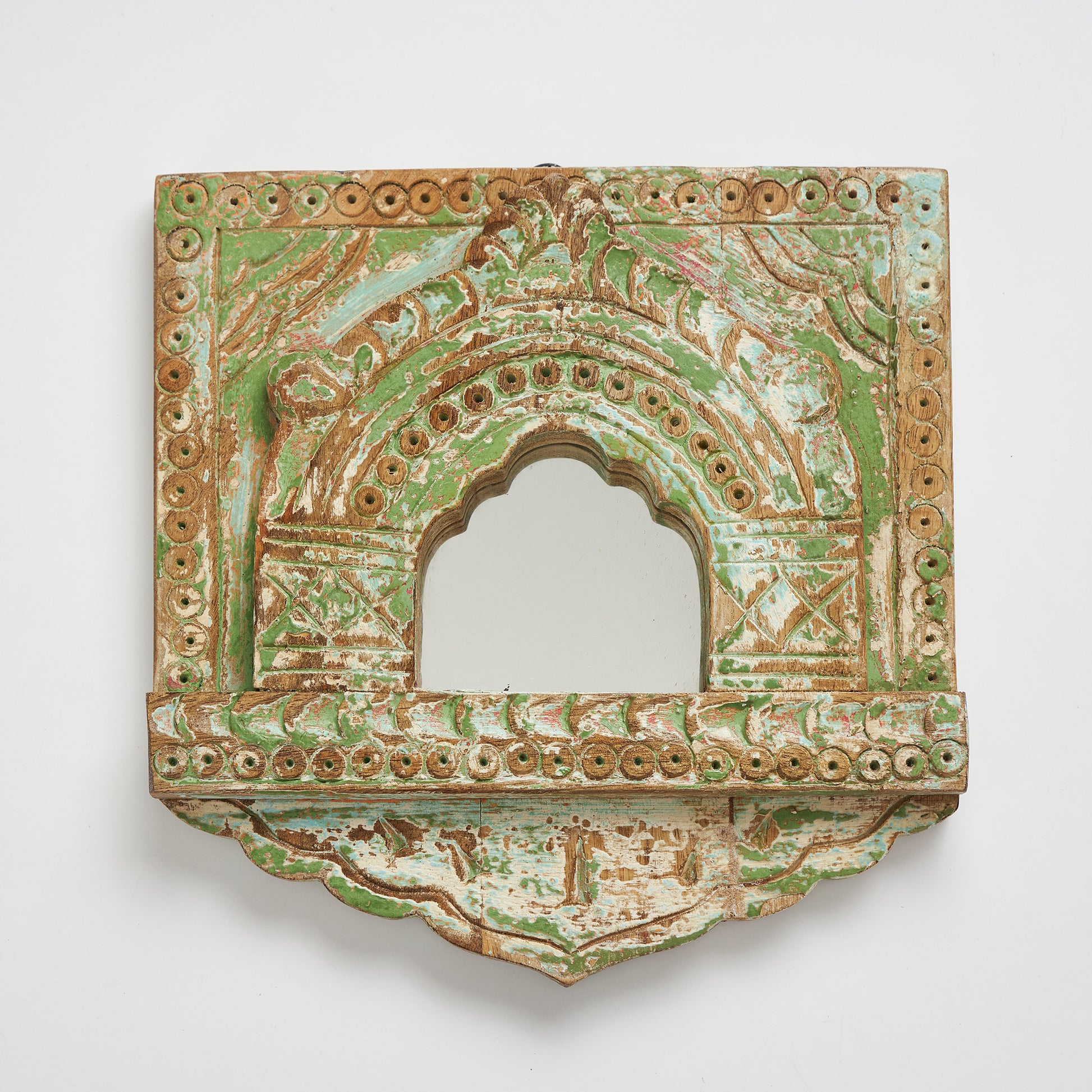 Oglindă cu ramă sculptată manual din lemn. Este de dimensiuni mici, ușor de integrat pe un perete, pe un hol sau deasupra unei console. Potrivită ca detaliu decorativ care adaugă un plus de autenticitate oricărui spațiu.
