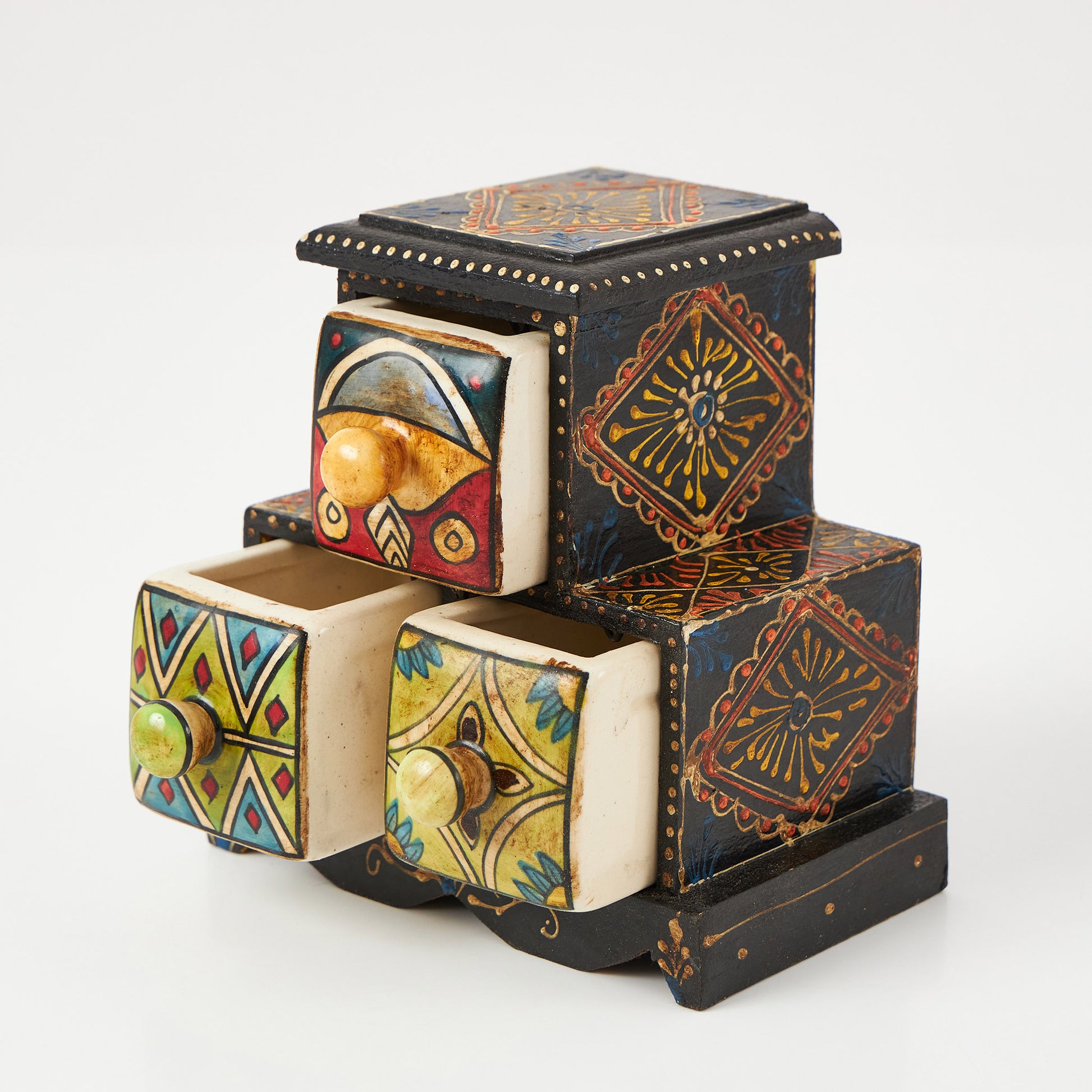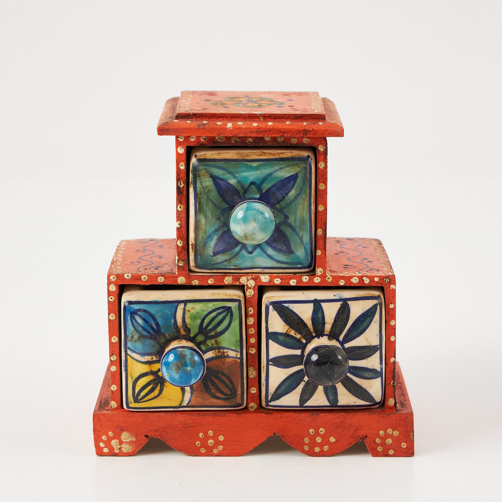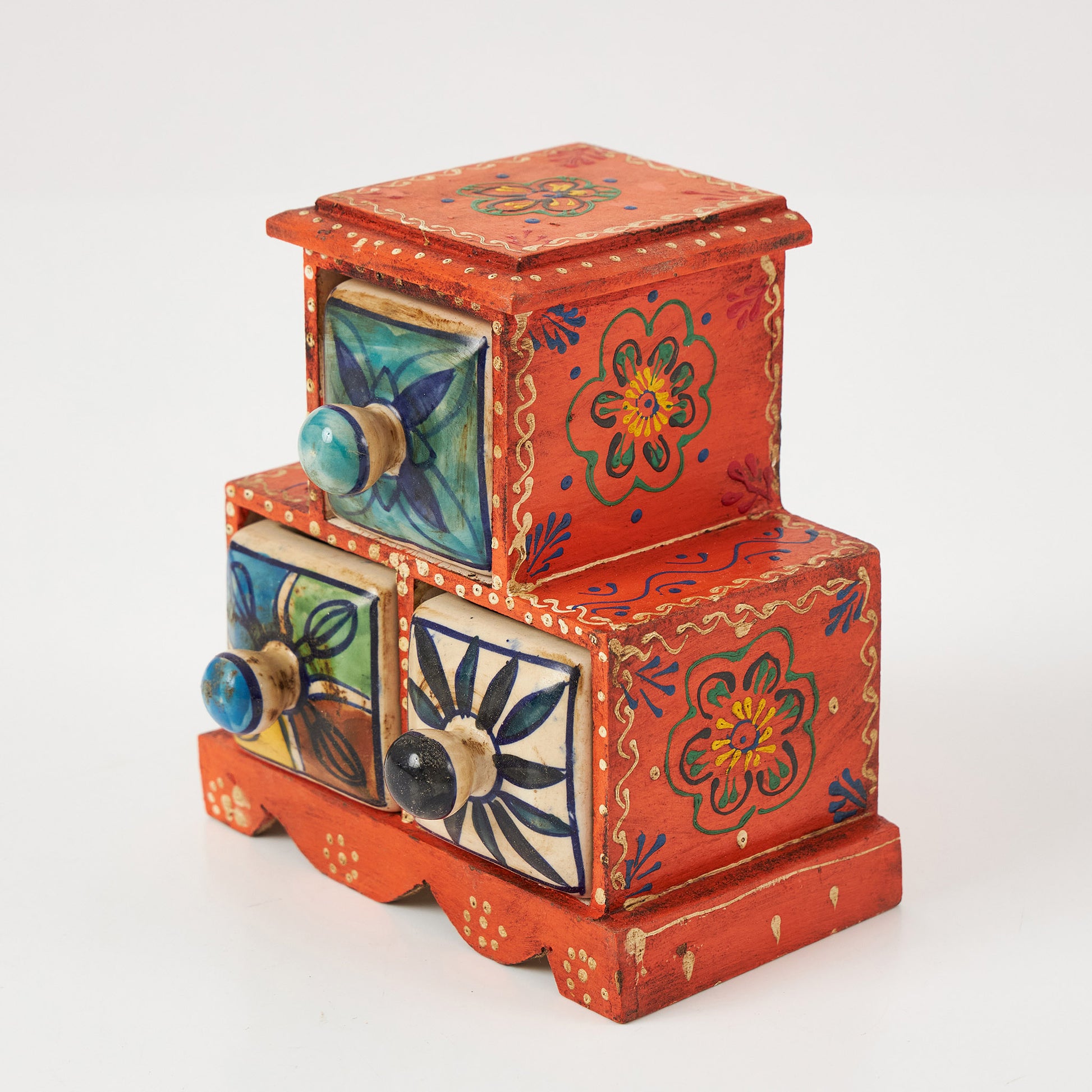 Cutiuta din Lemn cu 3 Sertare Ceramice