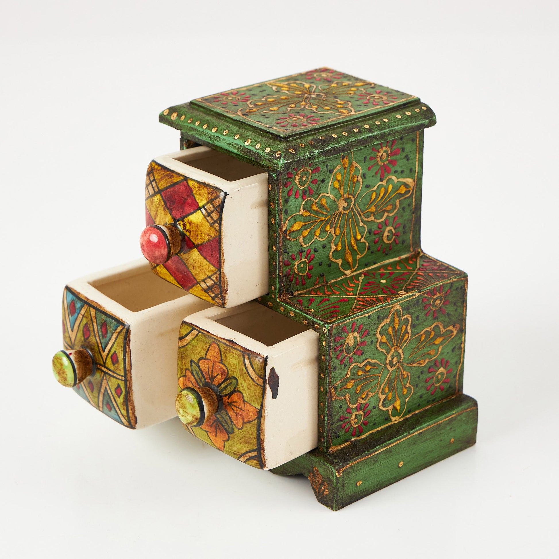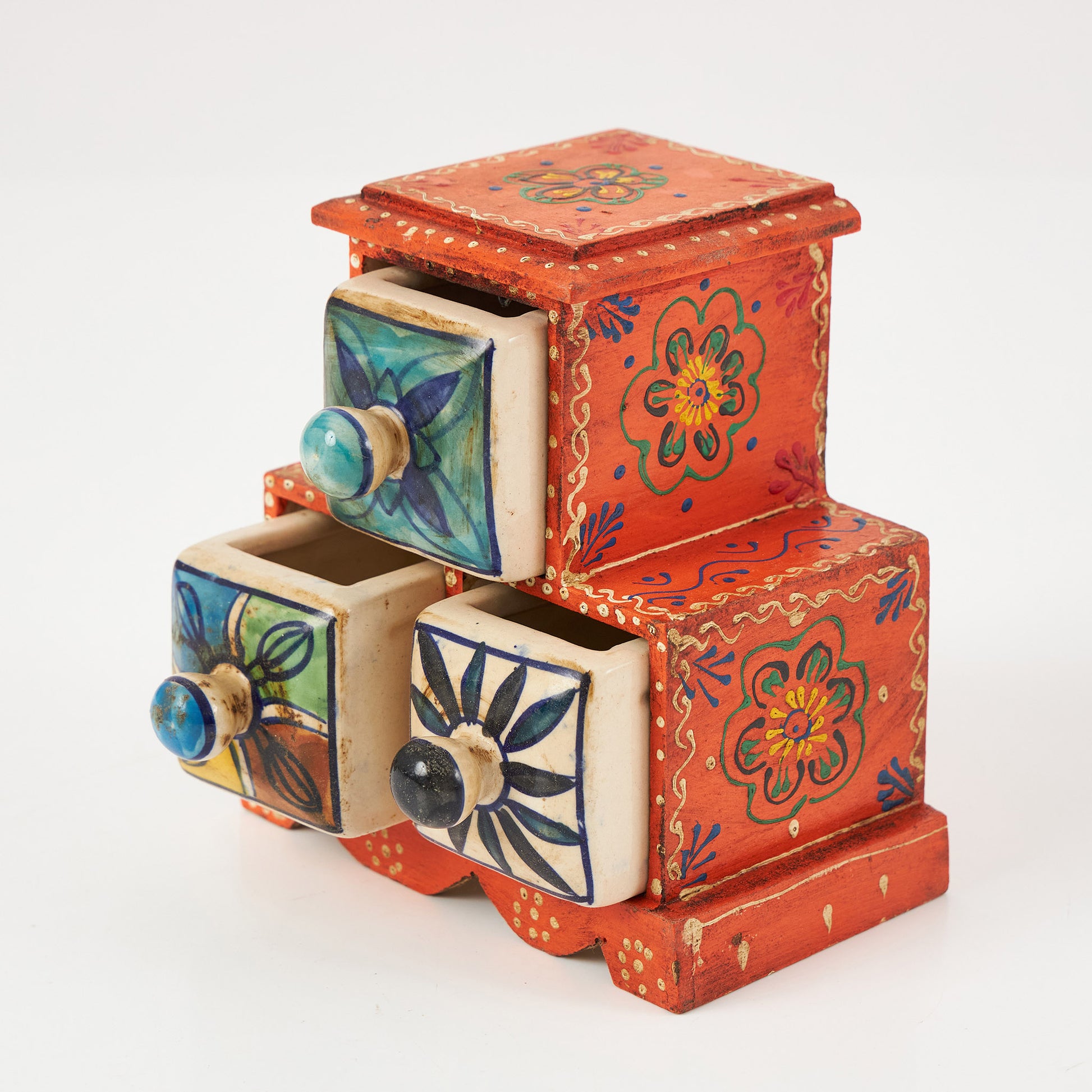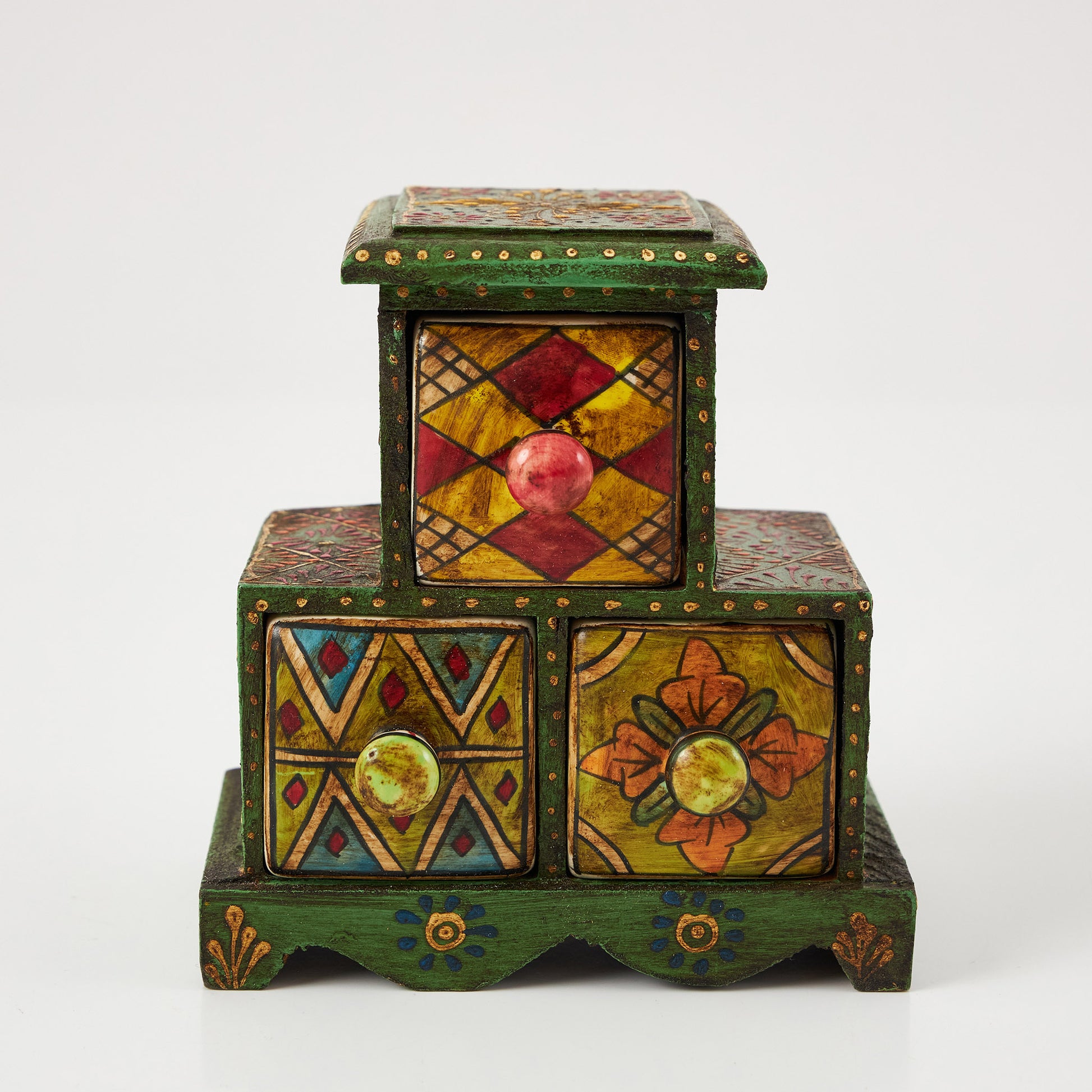 Cutiuta din Lemn cu 3 Sertare Ceramice