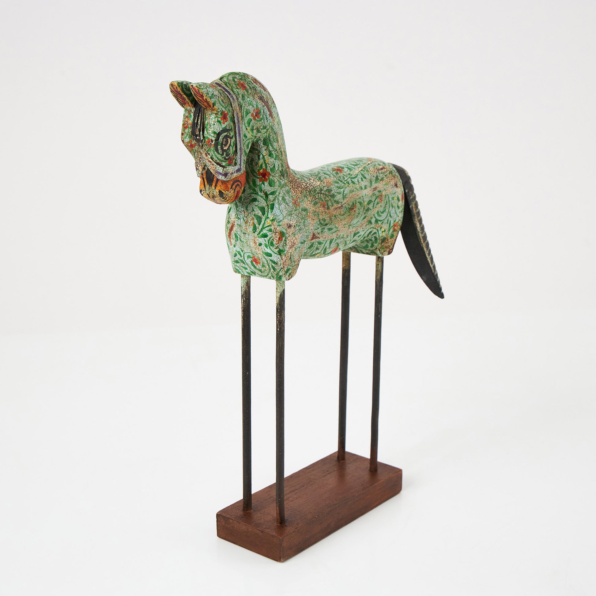 Statuetă decorativă reprezentând un căluț, realizată manual din lemn și pictată în nuanțe vii cu motive florale. Este un obiect care adaugă un strop de culoare și autenticitate în living, pe o etajeră, într-un birou sau chiar într-o zonă de intrare. O piesă cu farmec aparte, potrivită pentru iubitorii de detalii inedite.