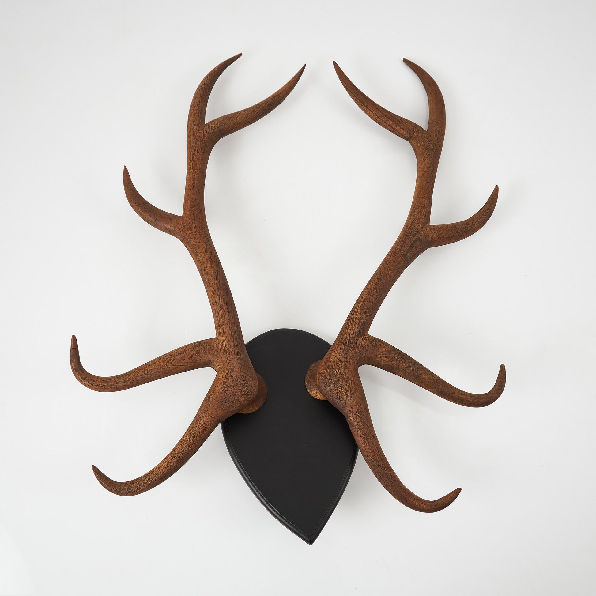 O piesă decorativă realizată din lemn, ce reproduce forma coarnelor de cerb. Montată pe suport, este ideală pentru a aduce un accent rustic într-un living, birou sau cabană. Se integrează ușor atât în decoruri moderne, cât și în cele tradiționale, oferind un detaliu natural și autentic.