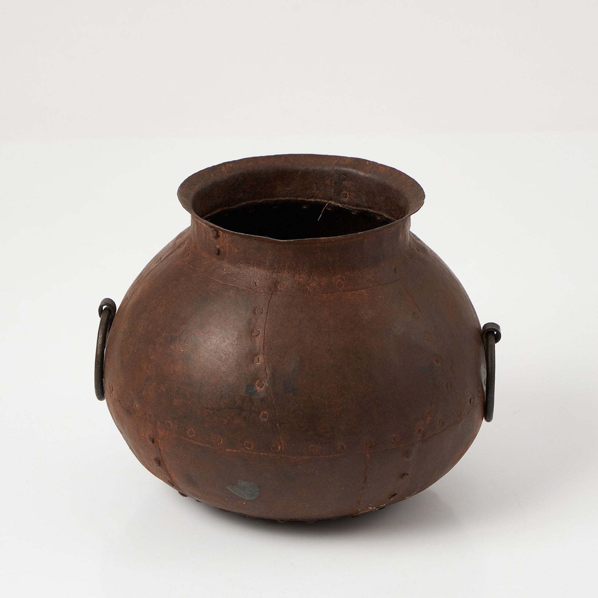 Vas din metal cu formă rotunjită, potrivit pentru plante sau aranjamente decorative. Poate fi folosit atât în interior, cât și pe terasă sau balcon, adăugând un accent interesant în decor.