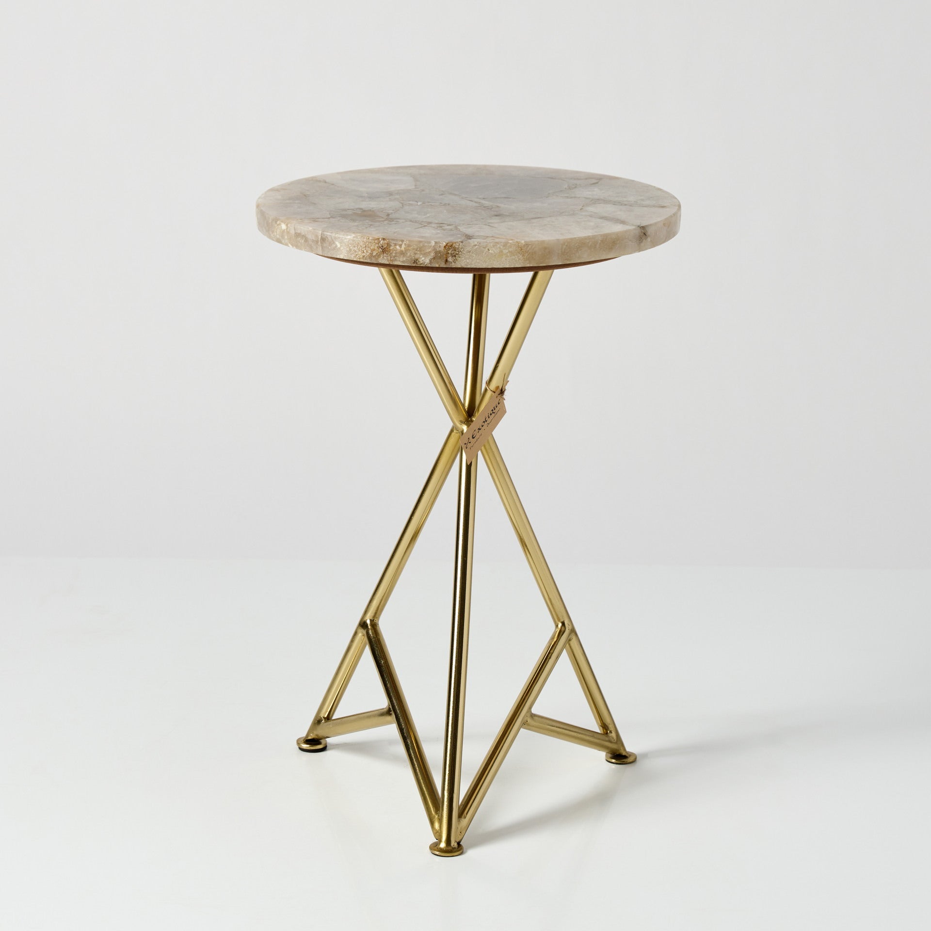 Blat rotund din marmură naturală susținut de un suport metalic auriu, cu linii subțiri și stabile. Este o piesă simplă, bine proporționată, care atrage prin combinația dintre marmură și metal. Poate fi așezată lângă canapea, pe hol sau într-un colț liber unde ai nevoie de un loc pentru o cafea, o carte sau o plantă. Se potrivește în locuințe moderne, dar și în spații unde există deja detalii aurii sau obiecte din marmură.
