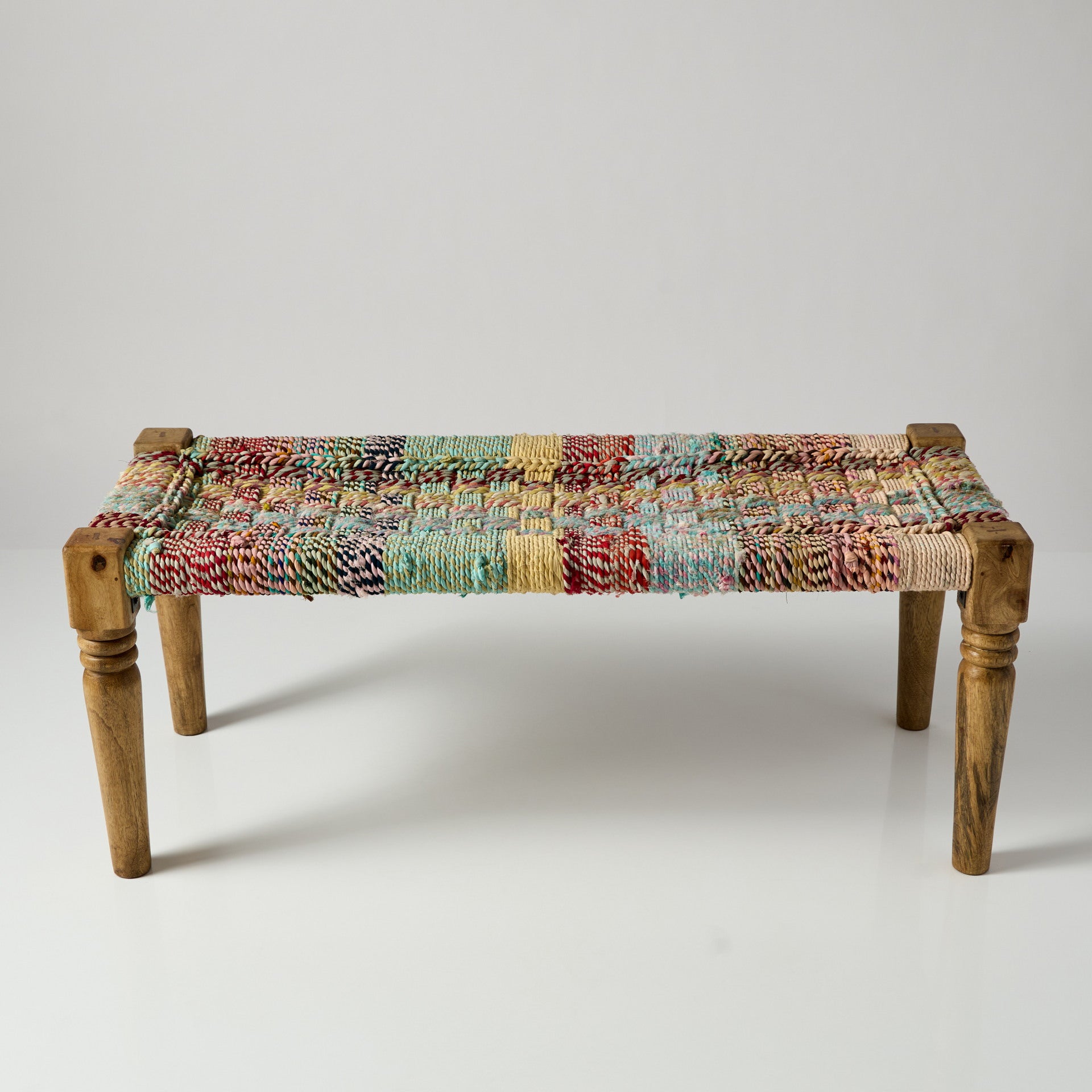Banchetă realizată din structură din lemn și șezut din material textil țesut, cu un model discret, în nuanțe calde. Textura țesăturii adaugă un plus de confort, iar forma simplă o face ușor de integrat în diferite spații. Poate fi folosită într-un hol, la capătul patului, într-un living, dressing sau într-un spațiu comercial, ca piesă practică și decorativă în același timp.