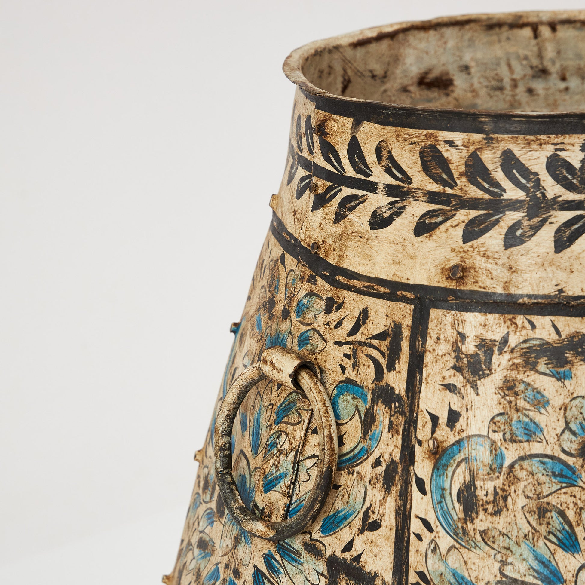 Un vas încăpător din metal, pictat manual cu detalii florale și imaginea unui elefant, simbol al înțelepciunii și norocului. Poate fi folosit ca piesă decorativă într-un colț de living sau hol, dar și ca suport pentru plante uscate. Este o alegere potrivită pentru cei care vor să aducă o notă exotică și autentică în casă.