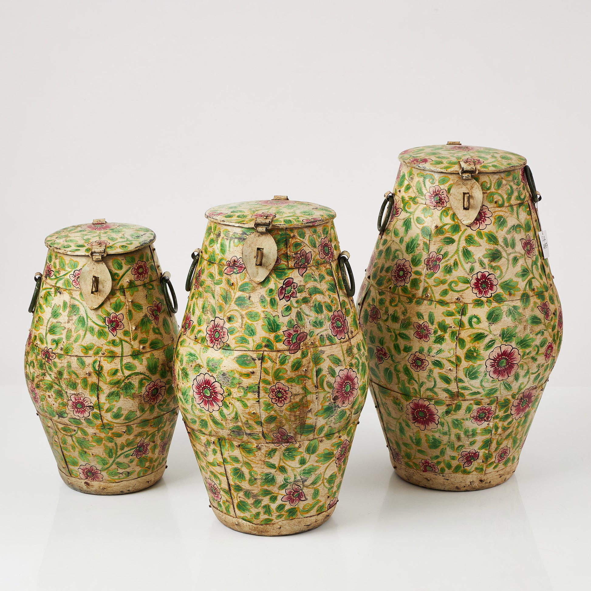 Realizat din metal și pictat manual cu motive florale în verde și roz, acest vas de dimensiune medie poate fi un accent decorativ deosebit. Îl poți folosi pentru flori uscate, ramuri sau pur și simplu ca piesă de decor pe podea, lângă o comodă sau în colțul unei camere.