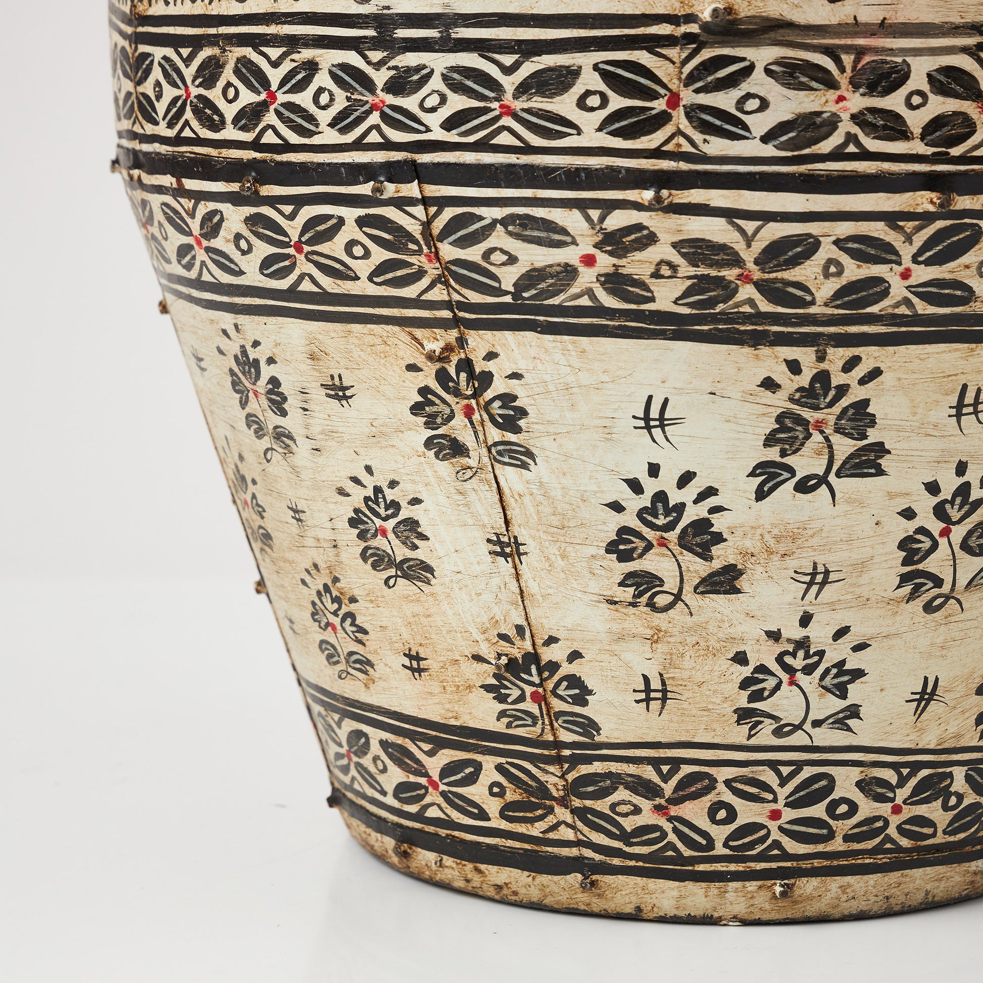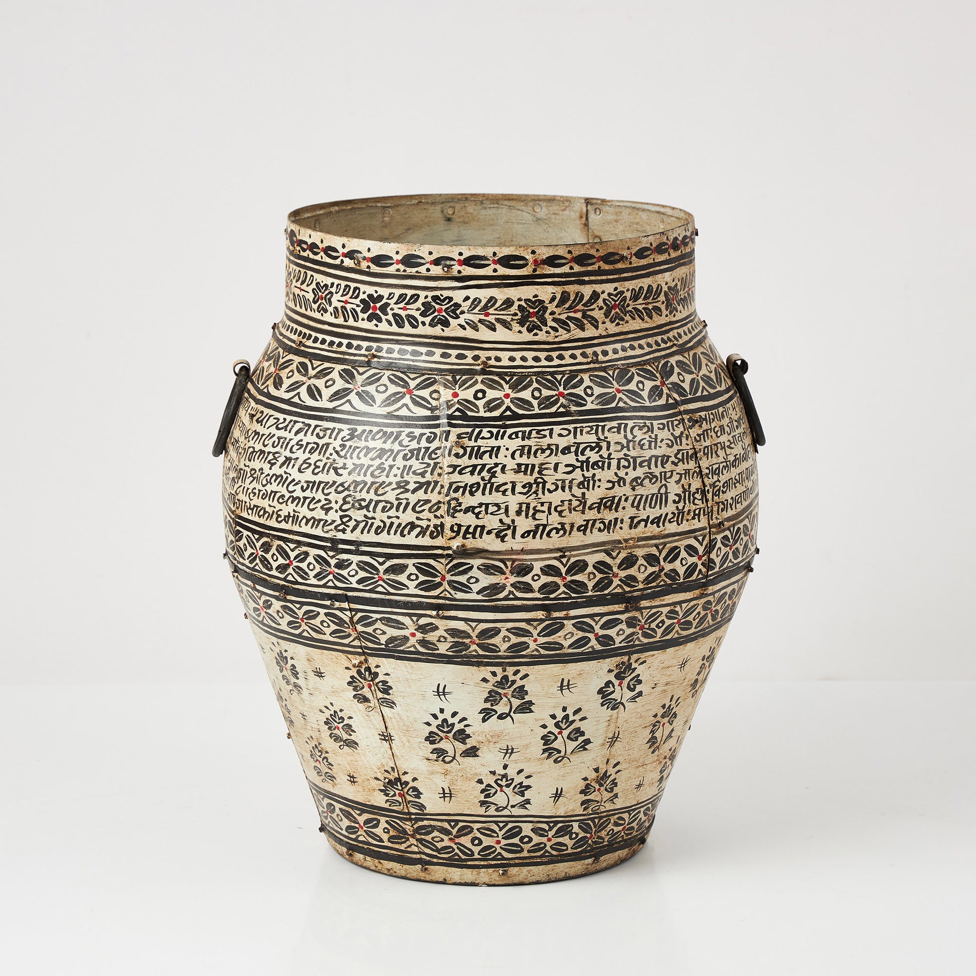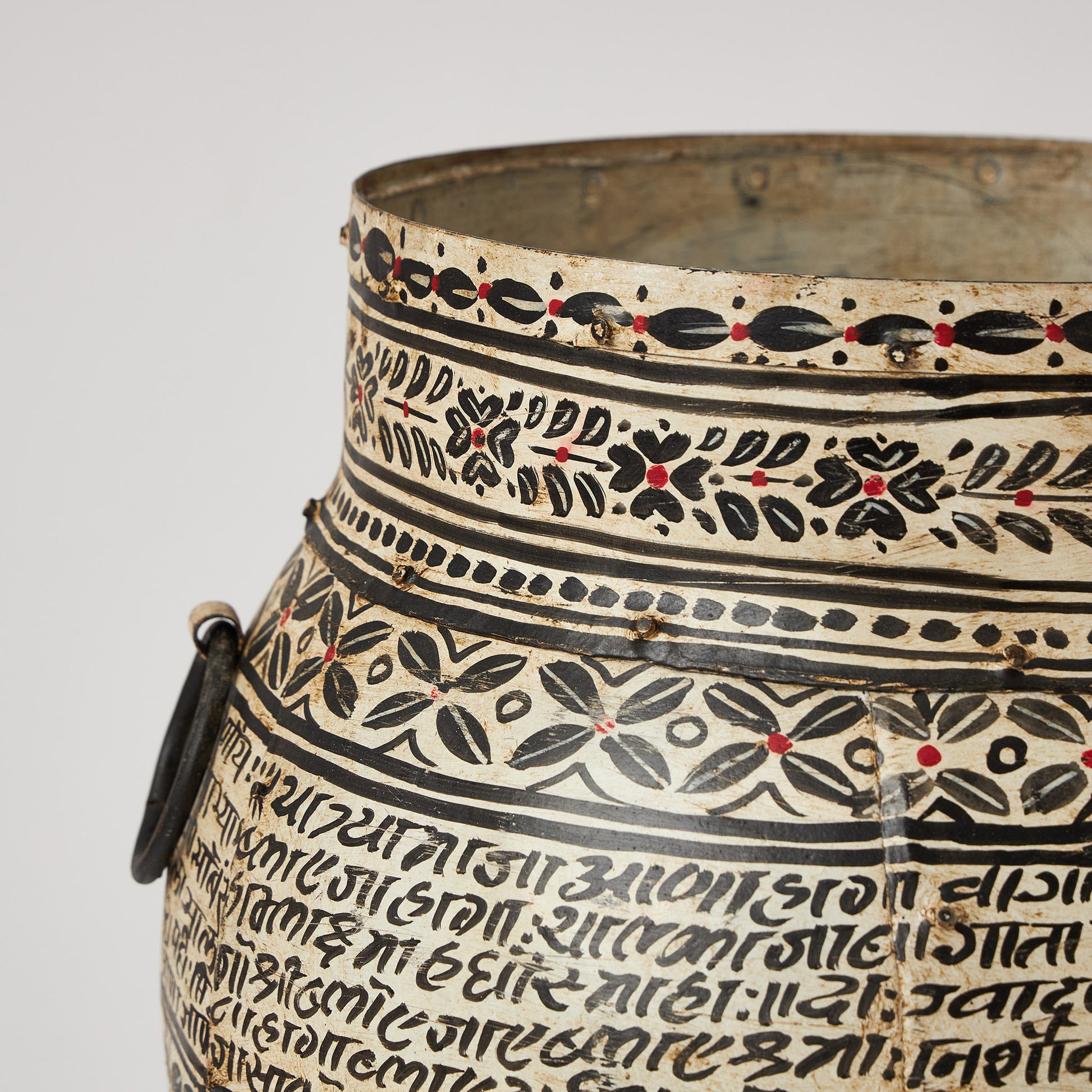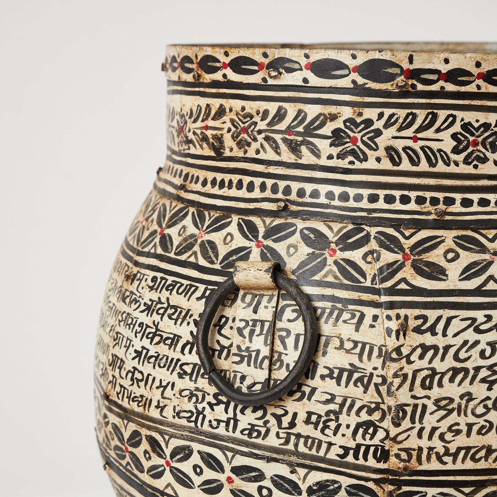 Un vas realizat din metal, cu finisaj autentic și detalii inspirate din motive etnice tradiționale. Decorat cu scrieri și modele florale stilizate, acesta adaugă un farmec aparte și un aer artizanal fiecărui spațiu. Este ideal ca obiect de accent pe podea sau pe o consolă, dar poate fi folosit și pentru a expune flori uscate, crengi decorative ori aranjamente simple și elegante.