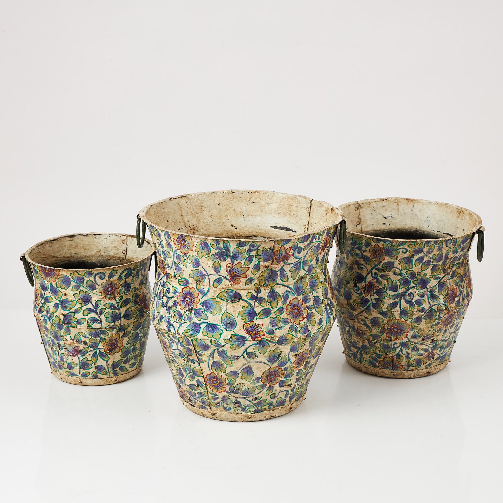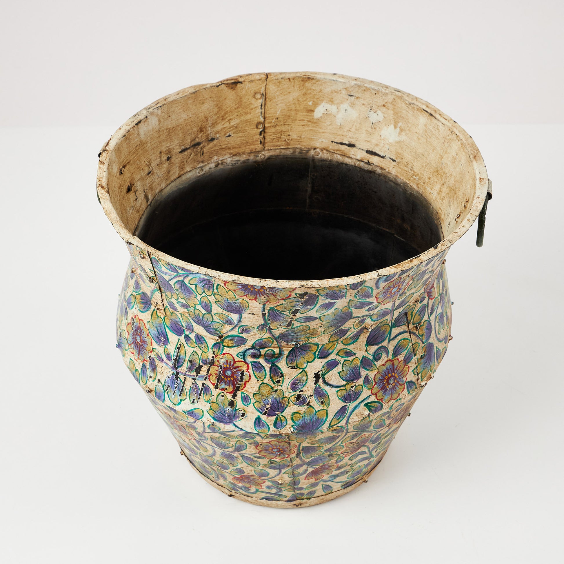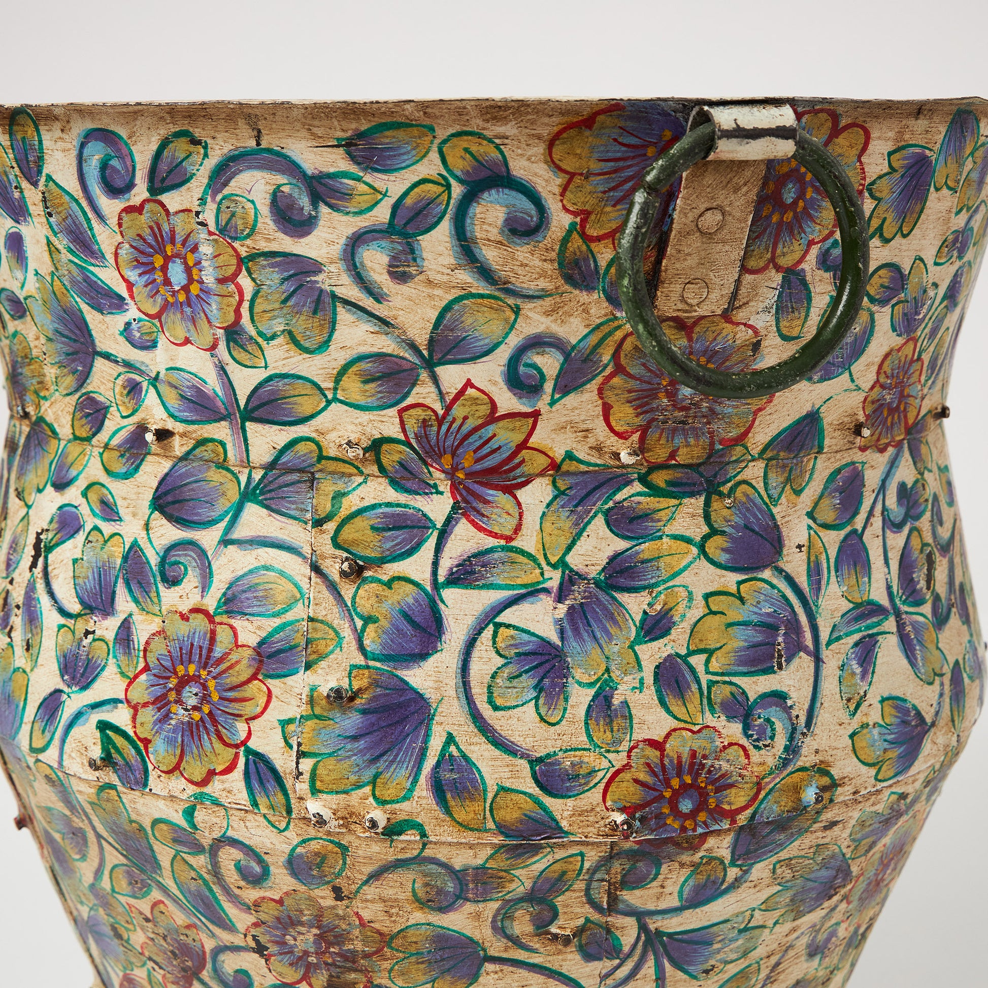 Un vas metalic cu formă elegantă și decor floral pictat manual, ce adaugă culoare și originalitate oricărui spațiu. Poate fi folosit ca suport pentru plante uscate sau artificiale, pentru aranjamente decorative ori pur și simplu ca piesă de accent. Designul său lucrat manual îi conferă un aer autentic și artistic, potrivit atât pentru interioare moderne, cât și pentru spații cu influențe etnice sau vintage.