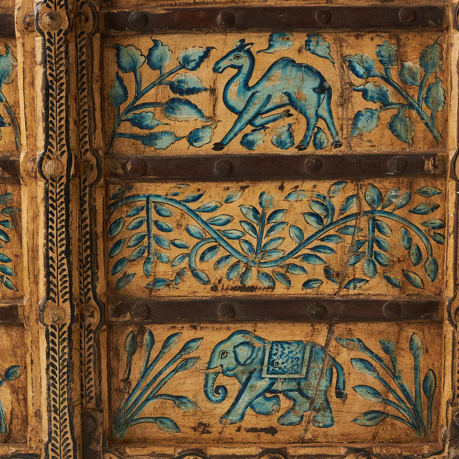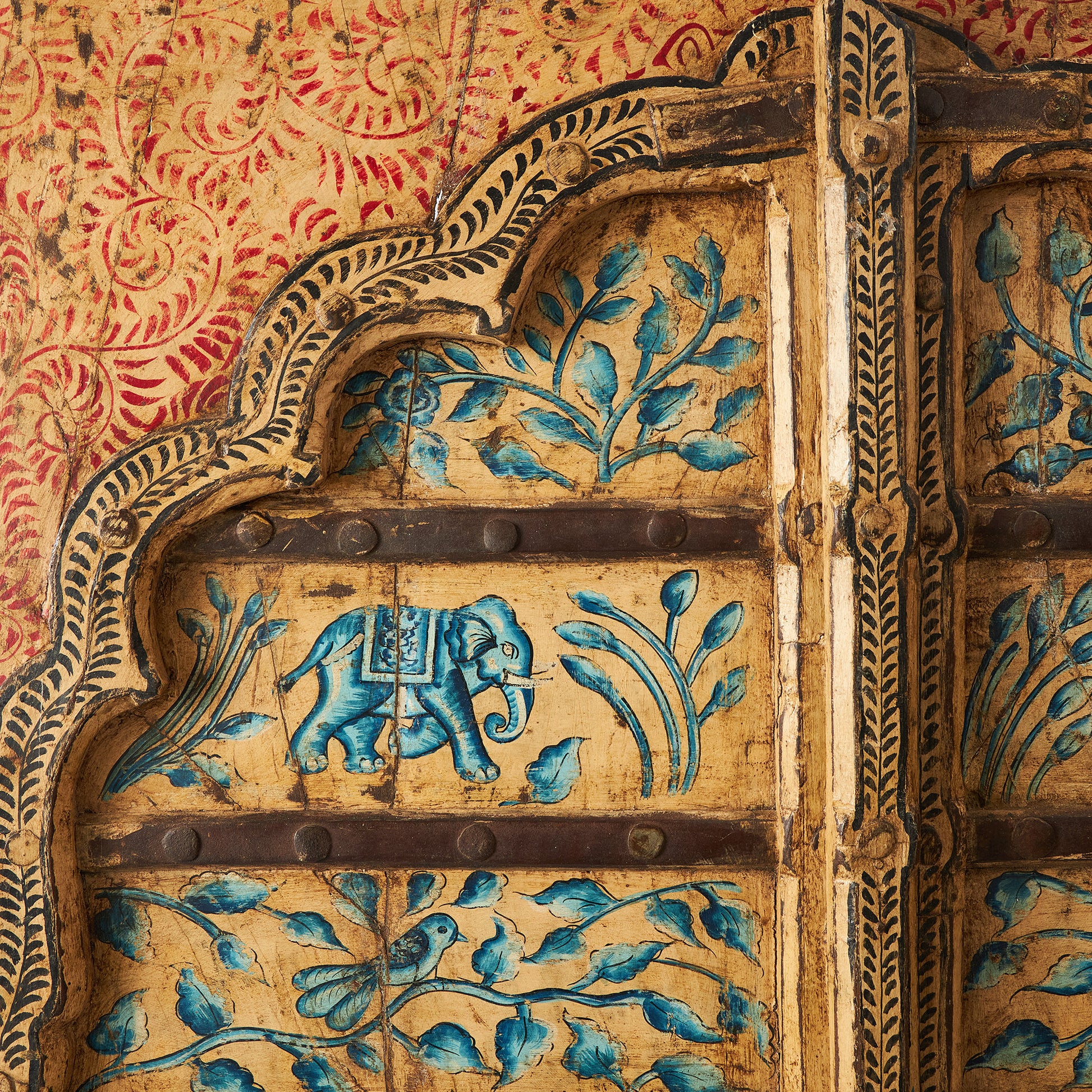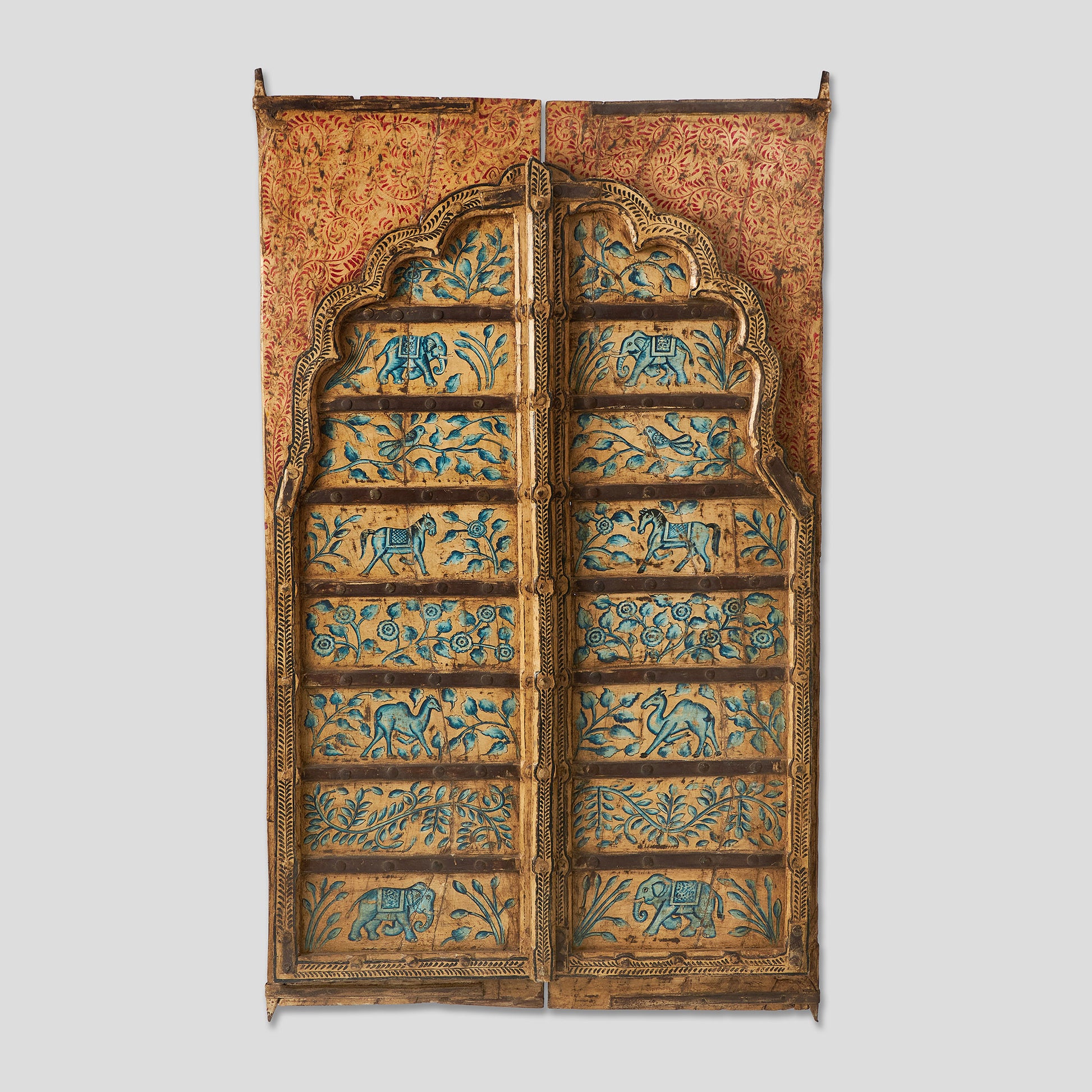 Poartă indiană pictată manual, realizată din lemn masiv, cu motive tradiționale. Este o piesă decorativă unicat, care poate fi folosită atât ca element arhitectural, cât și ca panou decorativ de mari dimensiuni. Se potrivește în interioare tematice, restaurante, pensiuni sau spații de expunere, aducând autenticitate și un aer aparte inspirat din cultura indiană.