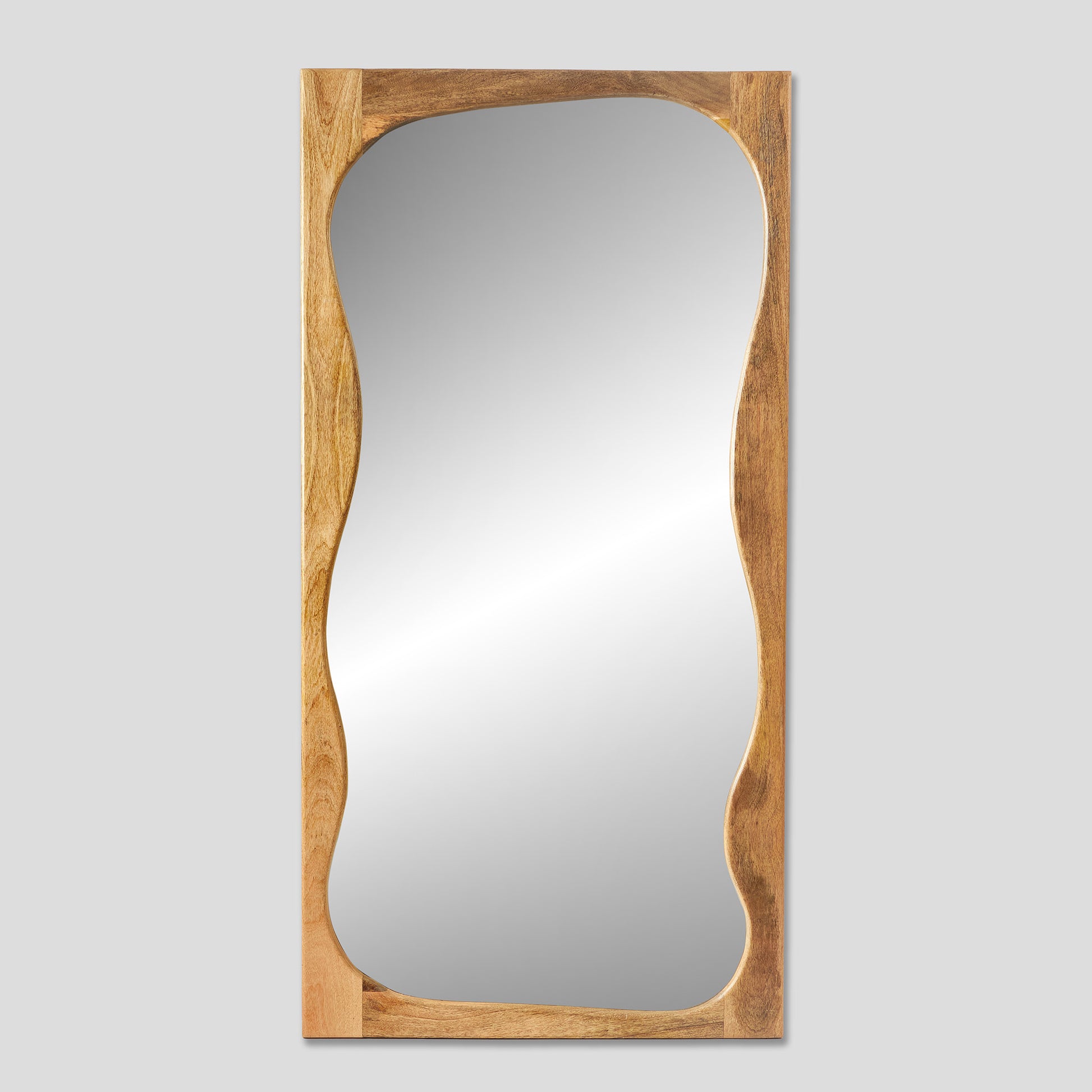 Oglinda are un design cu linii organice, încadrată într-o ramă din lemn masiv lucrată manual. Este o piesă versatilă, care aduce luminozitate și un detaliu natural în orice spațiu. Poate fi așezată în hol, pentru a crea impresia de spațiu și a adăuga funcționalitate, în dormitor ca element util zilnic sau în living, pe un perete liber, ca accent decorativ. Textura lemnului oferă o notă caldă, păstrând aspectul autentic al materialului.