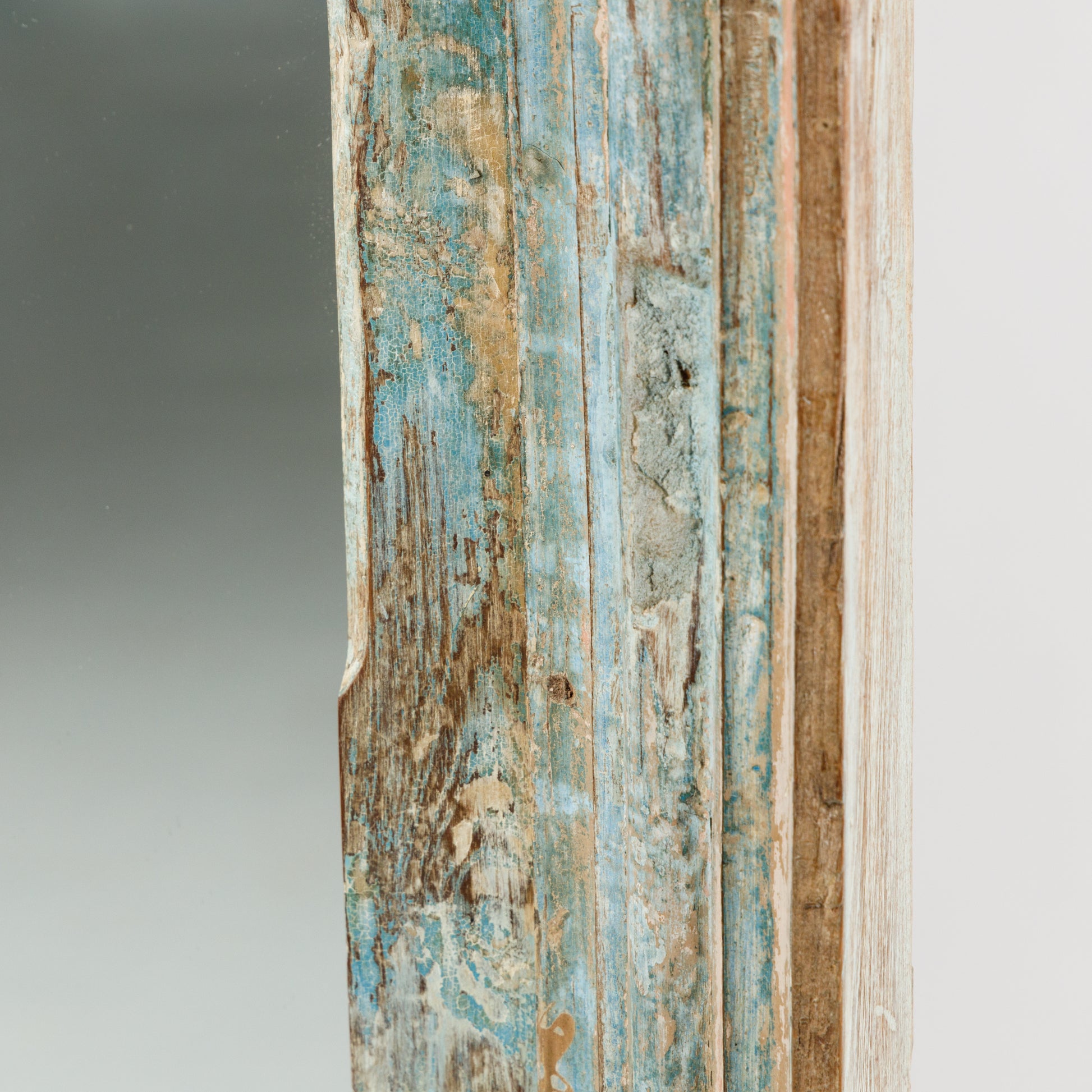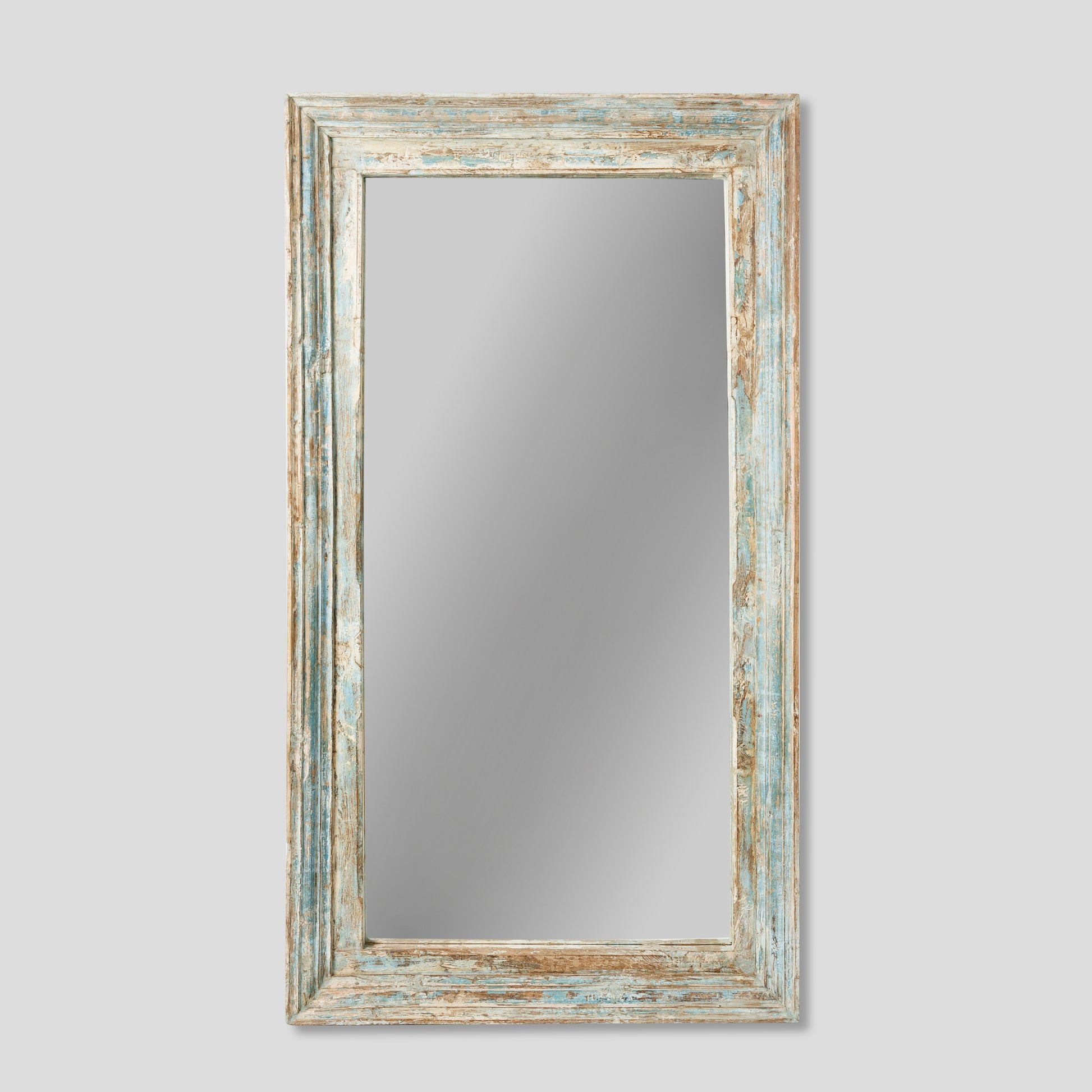 Oglindă cu ramă din lemn de mango cu finisaj patinat, în nuanțe de alb și albastru. Textura sa ușor uzată îi oferă un aspect rustic, potrivit pentru interioare cu influențe vintage sau boho. Poate fi așezată în hol, dormitor sau living, aducând luminozitate și senzația de spațiu deschis. De asemenea, se integrează bine în cafenele, boutique-uri sau spații comerciale, unde poate adăuga un detaliu decorativ plăcut.