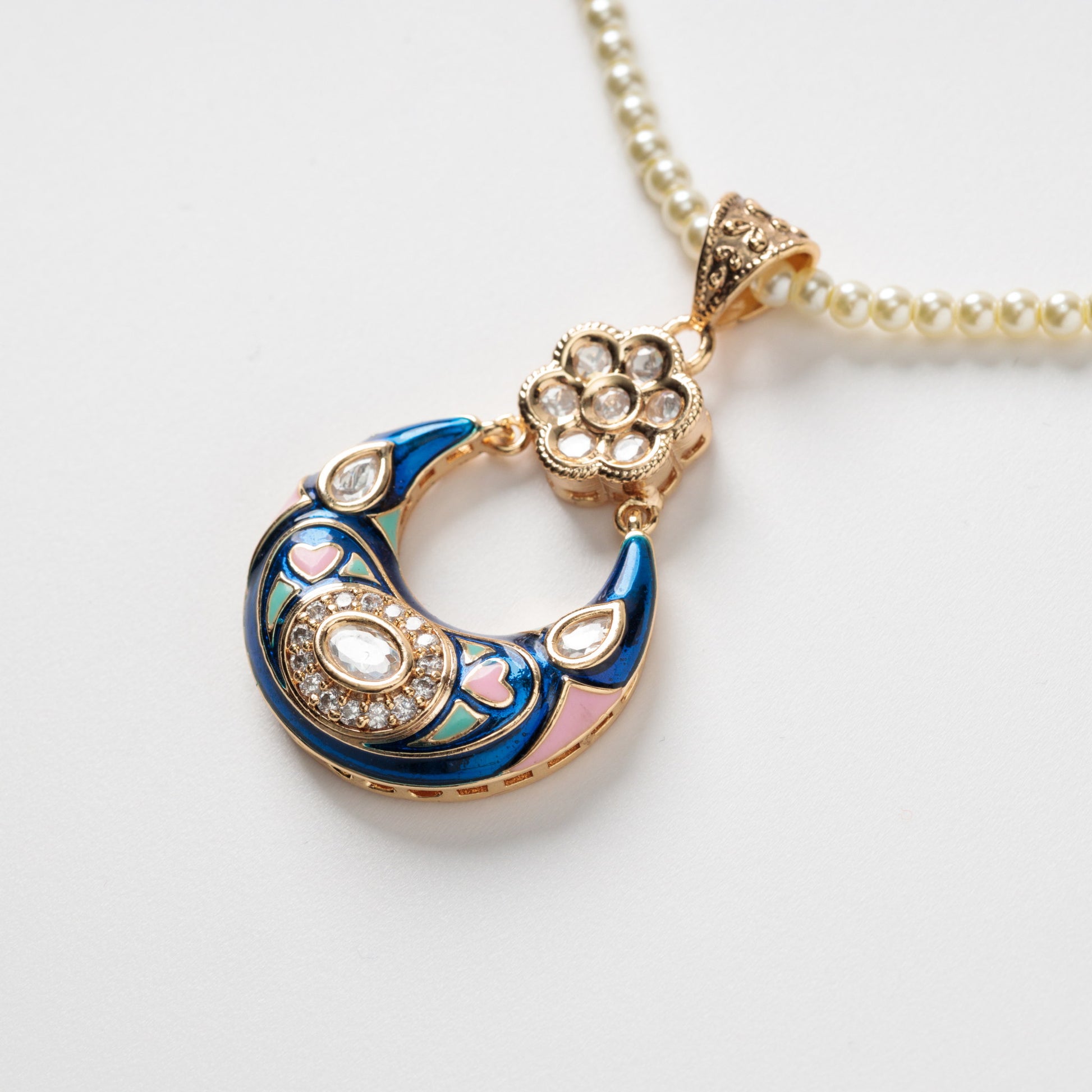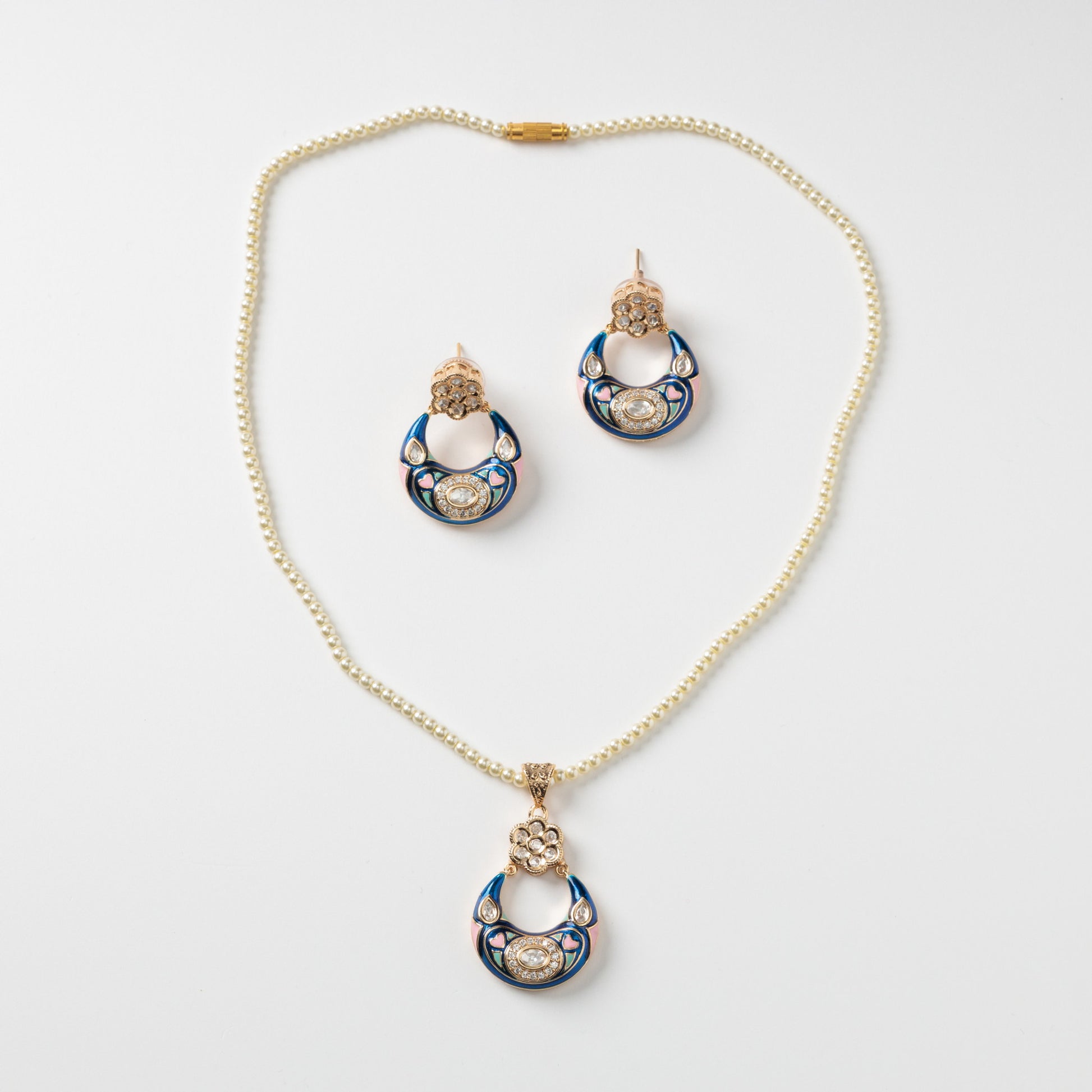 Set colier si cercei cu perle, email si zirconiu