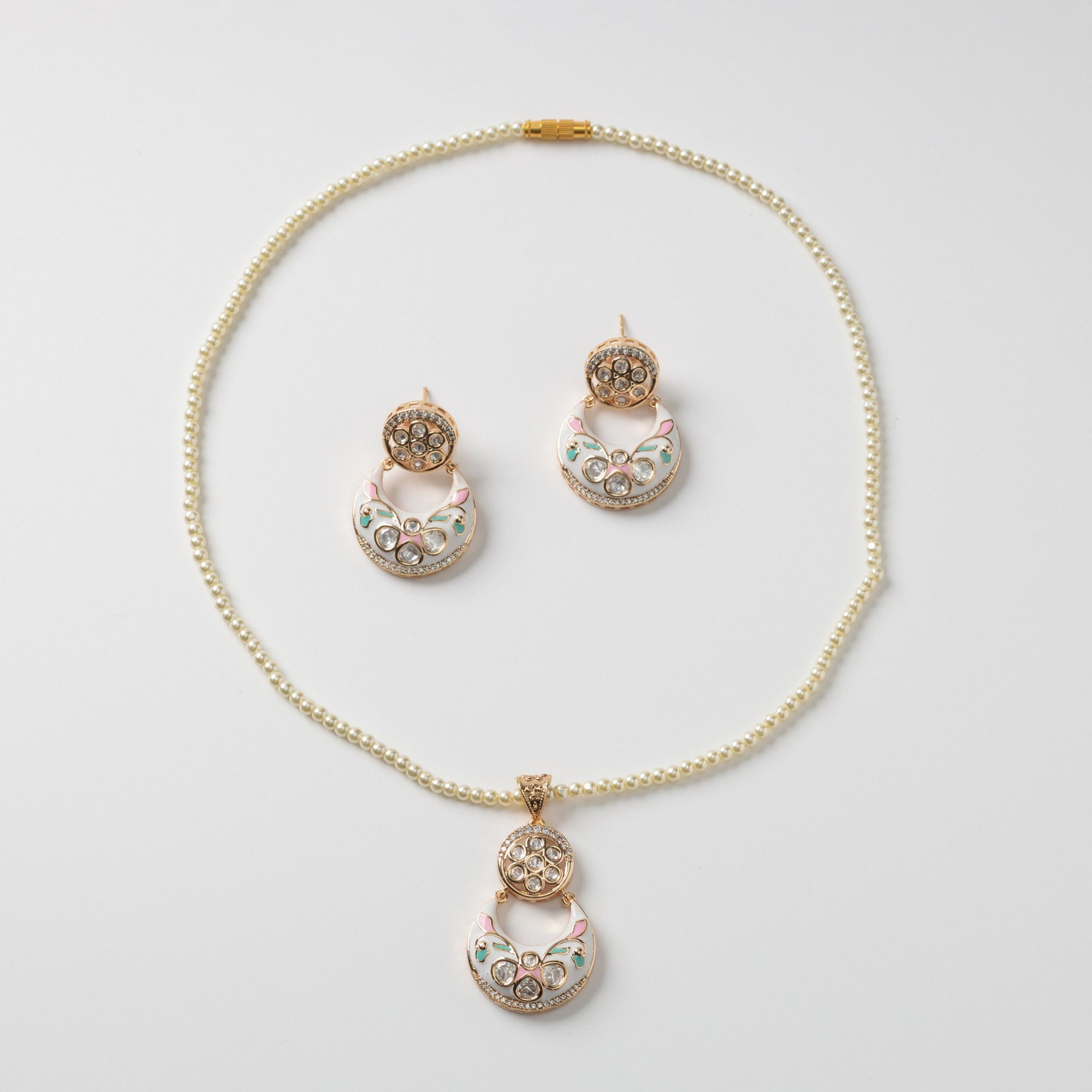 Setul format din cercei și colier cu email în nuanțe de alb, vernil și roz pal, îmbogățit cu perle și zirconiu, impresionează printr-un design delicat și super deosebit. Strălucirea discretă și combinația rafinată de culori transformă acest set într-un accesoriu care adaugă farmec și eleganță oricărei ținute. Hipoalergenic și fără nichel, oferă confort și siguranță, fiind alegerea ideală pentru momente speciale sau pentru a evidenția frumusețea de zi cu zi.