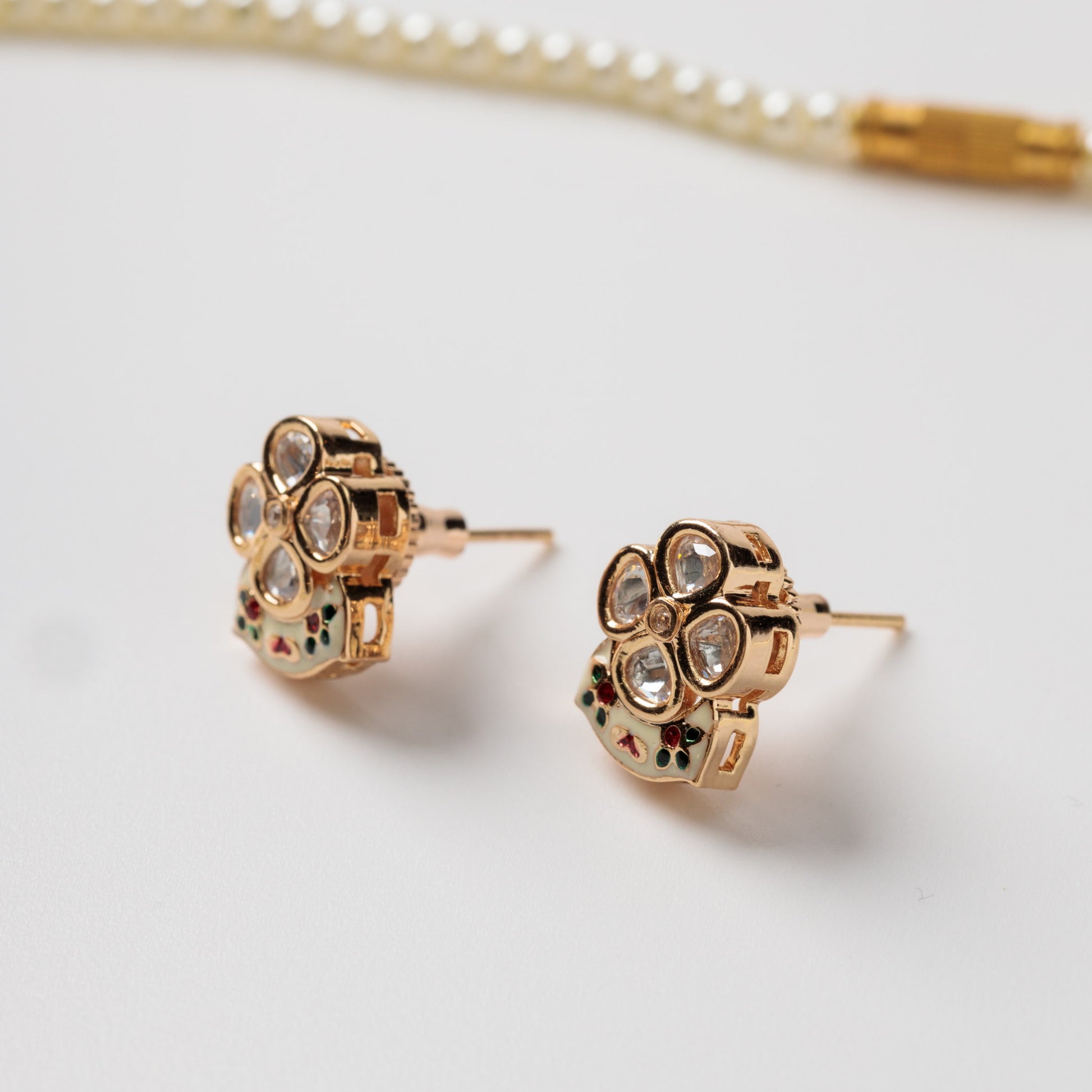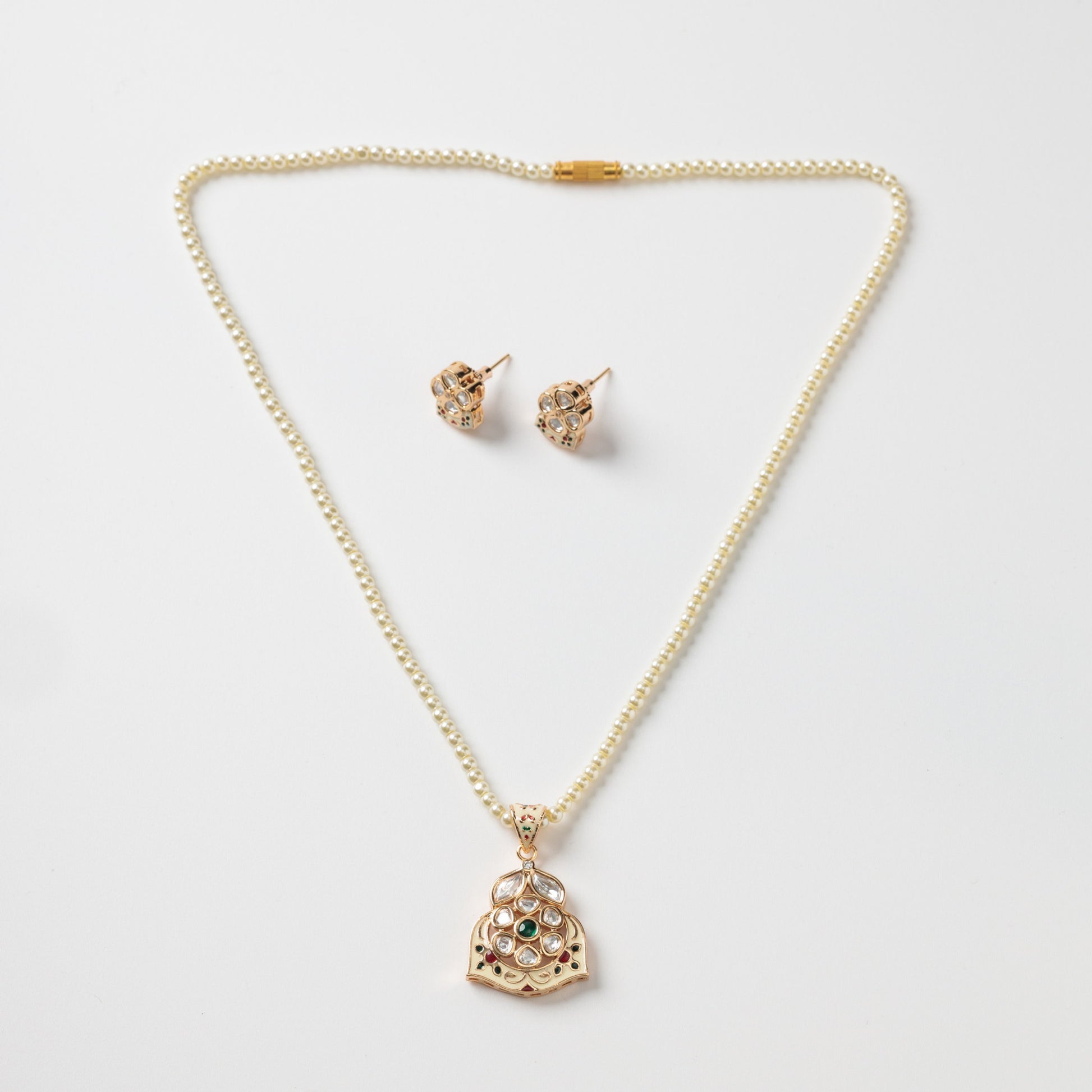 Acest set de cercei și colier cu perle email delicat în nuanțe de alb și roșu, completat de zirconiu, se remarcă printr-un design foarte diafan și elegant. Hipoalergenic și fără nichel, este confortabil pentru pielea sensibilă și transformă orice ținută într-o apariție rafinată, perfectă pentru evenimente speciale sau momente în care vrei să adaugi un plus de feminitate.