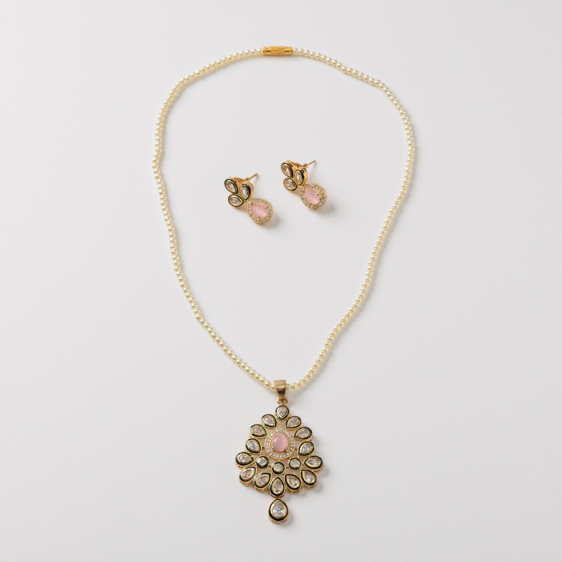 Acest set elegant cu perle, zirconiu și pietre sintetice îmbină rafinamentul clasic cu strălucirea modernă. Perlele delicate adaugă o notă de feminitate atemporală, în timp ce zirconiu și pietrele sintetice captează lumina și atrag privirile prin strălucirea lor.