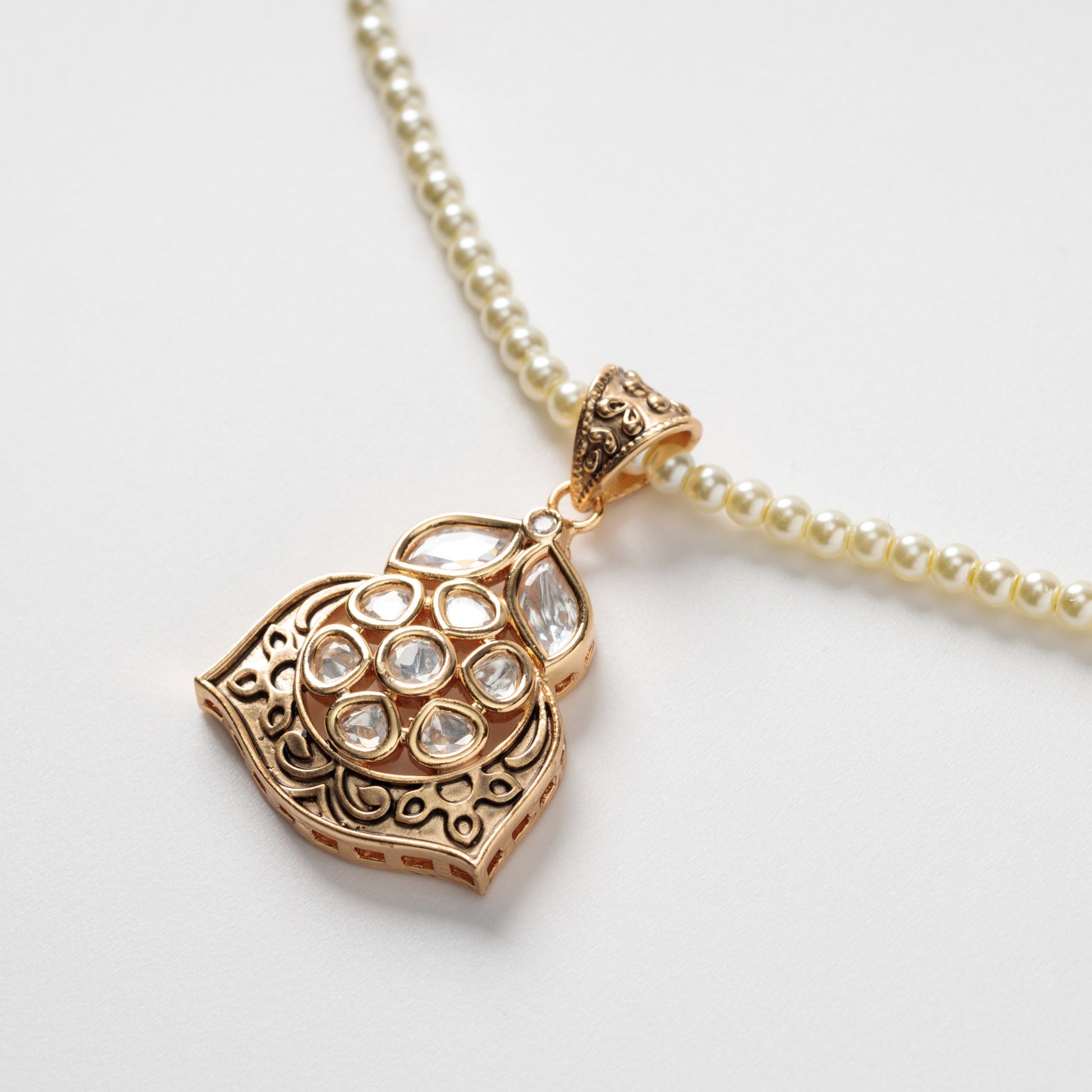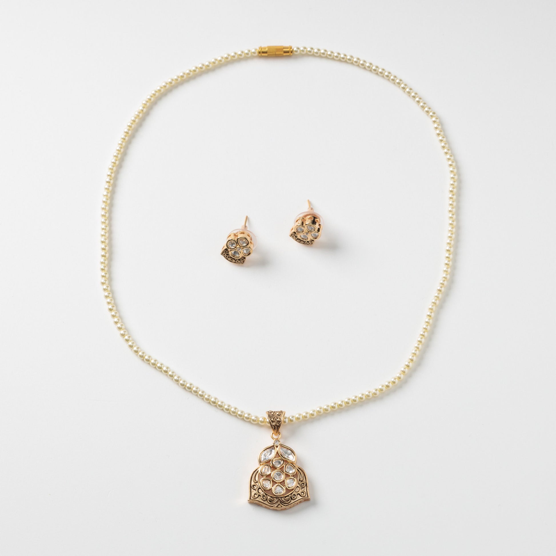 Set colier si cercei cu perle si zirconiu