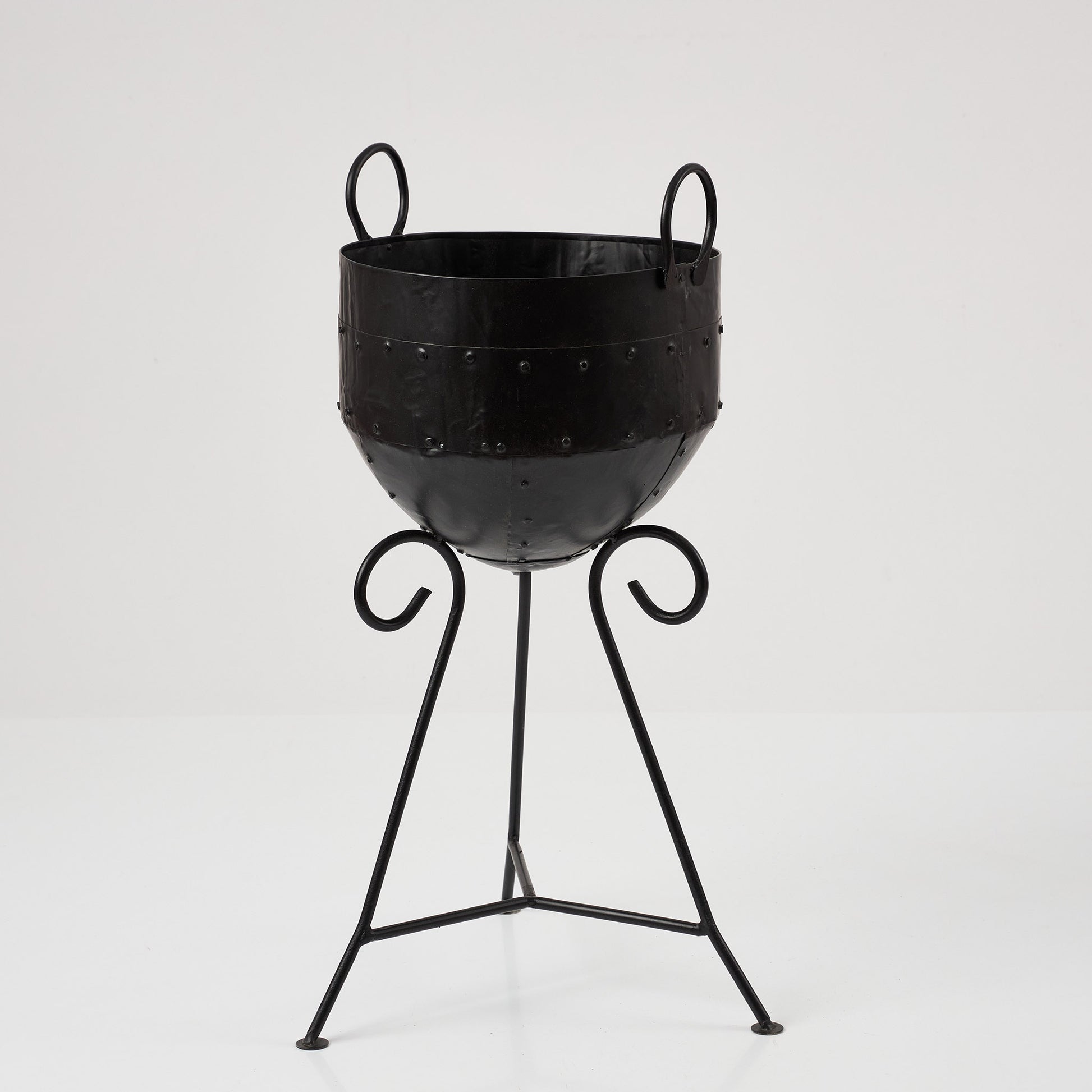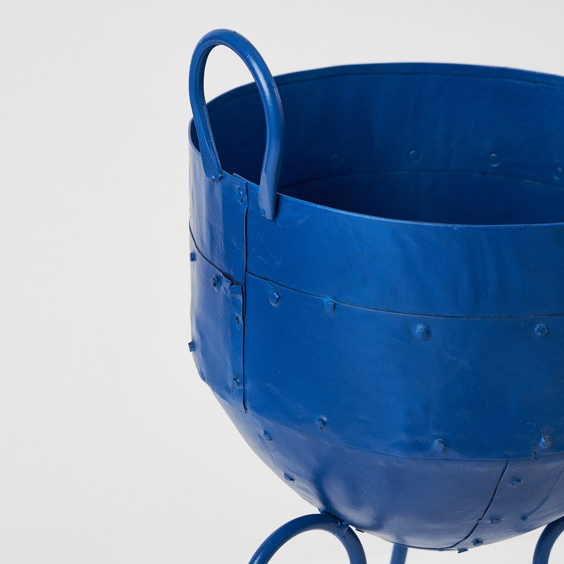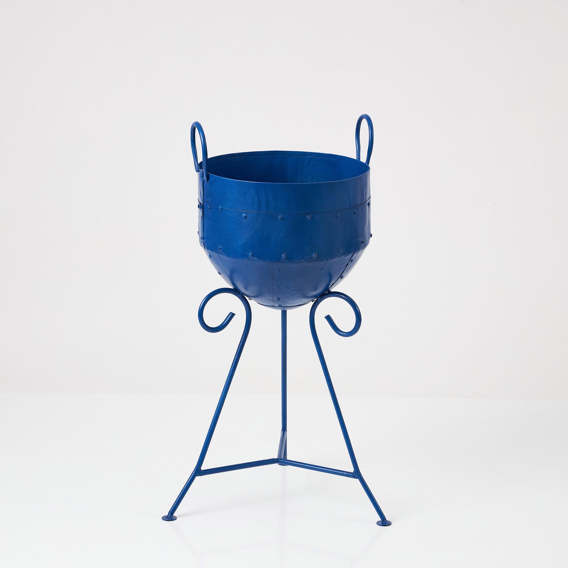 Vas decorativ din metal, disponibil în două variante de culoare: negru și albastru. Este prevăzut cu mânere laterale și suport din metal lucrat cu detalii curbate, care oferă stabilitate și un aspect aparte. Poate fi folosit pentru a așeza plante de interior sau de terasă și se integrează ușor atât în spații moderne, cât și în decoruri rustice.